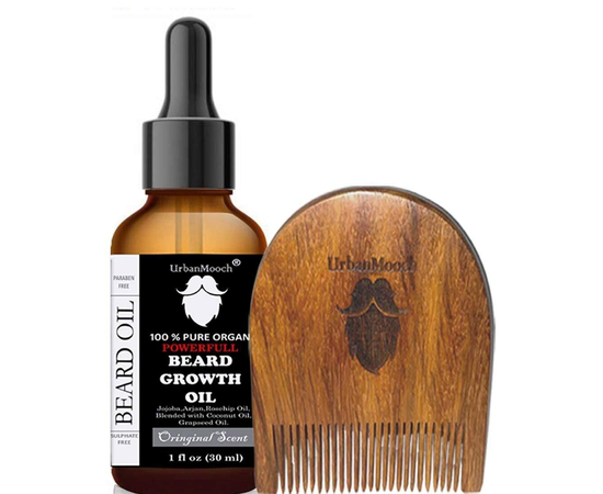 Urban Mooch Beard Growth Oil & Shisham Wood Beard Comb, Combo Set for Long & Healthy Beard | 30 ml Oil | Combo pack | Anti fungal Oil | powerful formulae