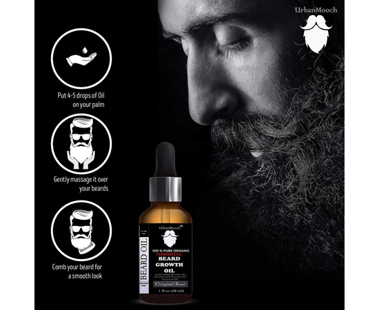 - This Beard Growth Oil is infused with red onion extract for men helps promote healthy beard and mustache growth. It also strengthens the beard and provides a deep nourishment to the hair follicles leading to healthy, stronger, fuzz free beards. It also ensure your beard looks even from all ends.
