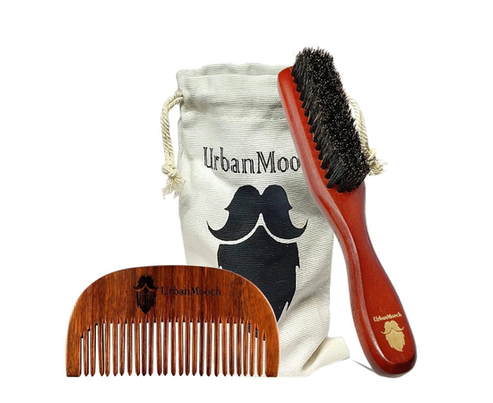 - BEARD BRUSH: Urban Mooch Beard Brush for men is made of 100% boar bristles and a pure grass tree handle. It helps distribute oil, improve hard hair texture, styling, shaping, smoothing, and conditioning. For more awesome results, it's perfect using with beard waxes, oils, balms, and conditioners.