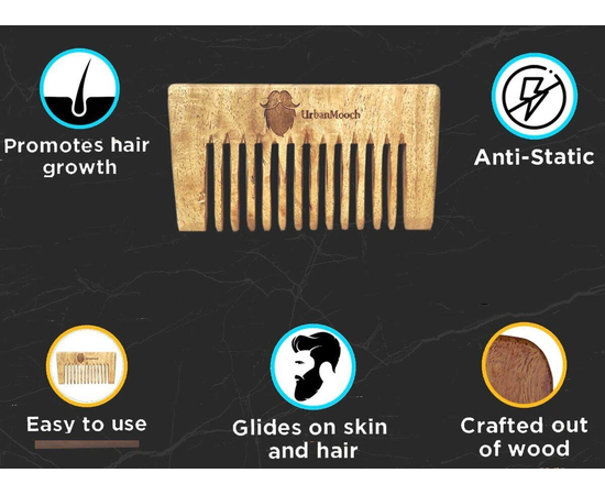 - Urban Mooch Beard Comb will glide through your beard with zero static build up (unlike plastic combs). The more you use Urban Mooch Beard Comb, the more beard oil it will retain, preserving the wood and darkening the finish.