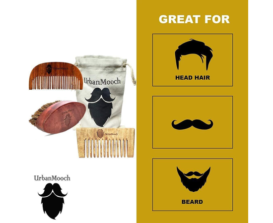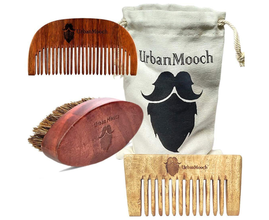 Urban Mooch Beard Grooming Kit - Set of 3 - Premium Beard Brush, Beard Comb and Hair Comb for Beard Styling & Beard Care - Trio comb Set - Premium Quality Beard Comb & Brush Set