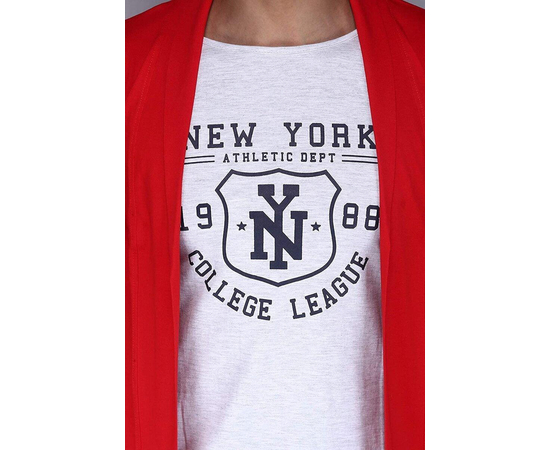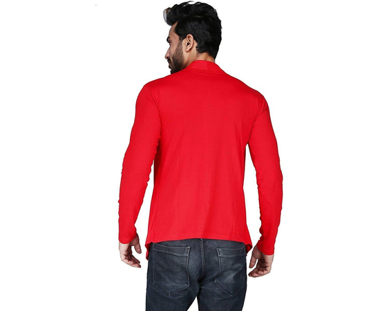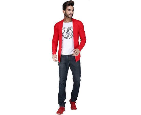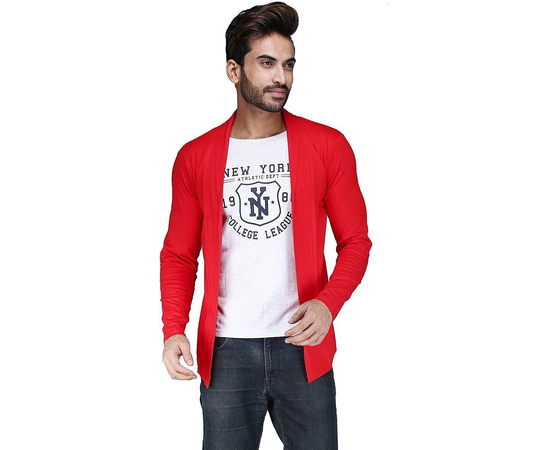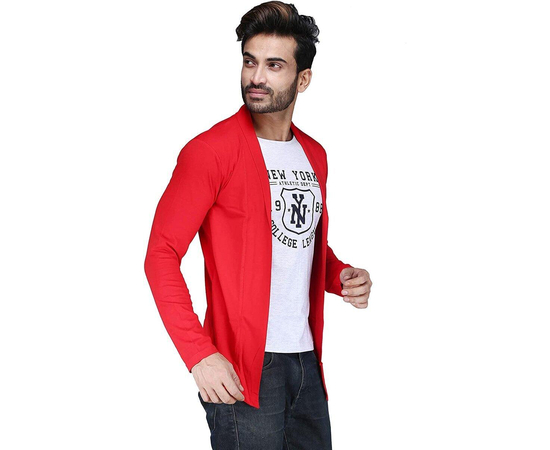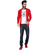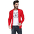 Men's Full Sleeve Cotton White Printed T-Shirt with Red Jacket Shrug Look Smart and Comfortable for Any Casual and Festive Purpose