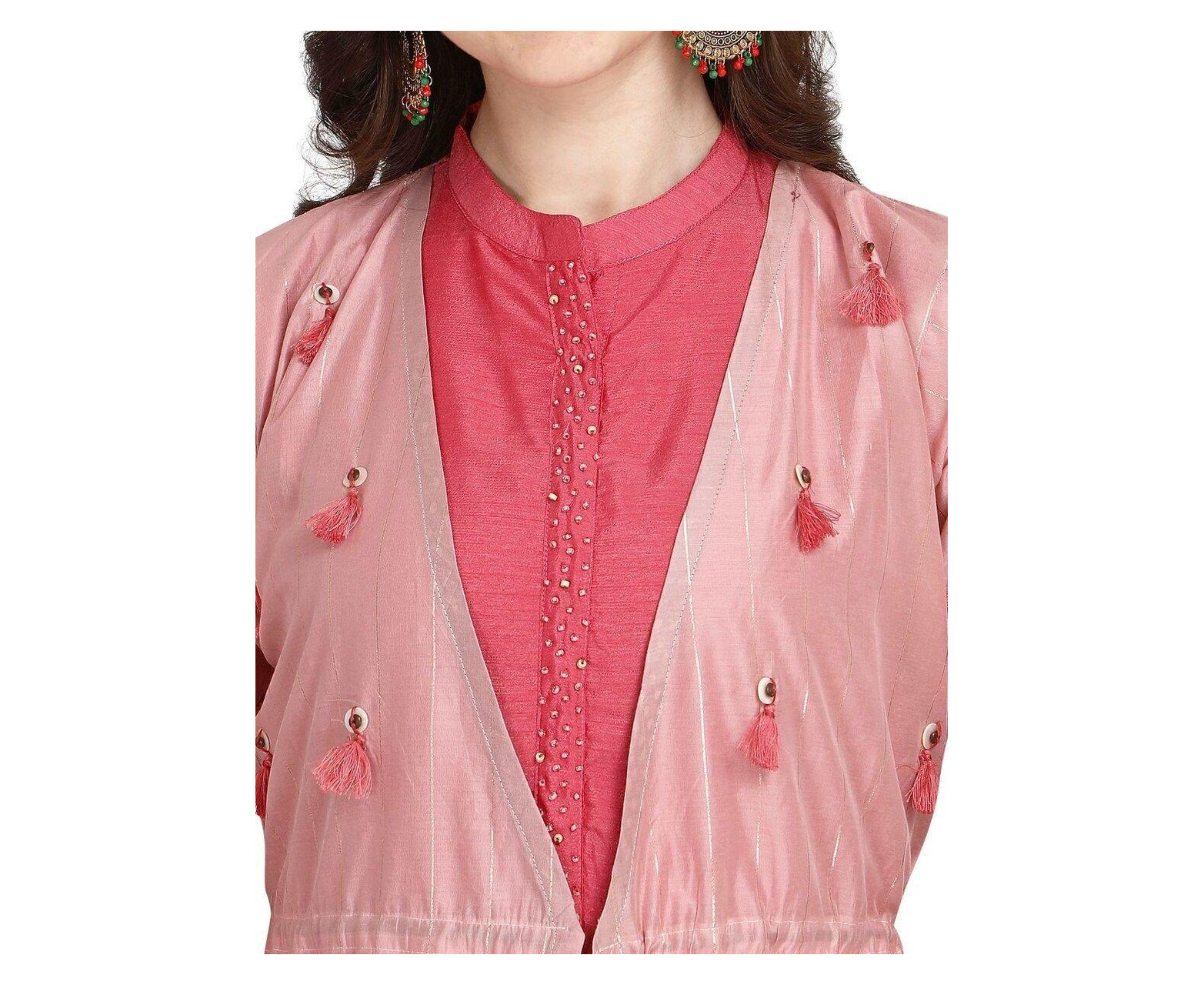 This Pink Cotton-blend Gown is the perfect choice for a weekend outing. It is designed in an A-line dress style, with a Jacket. The design is a favorite for picnics, outdoor, traveling, cycling, dancing, and stage performance. Use it as casual or formal wear for office, shopping, daily wear in a home, college, family, meetings, festive occasions