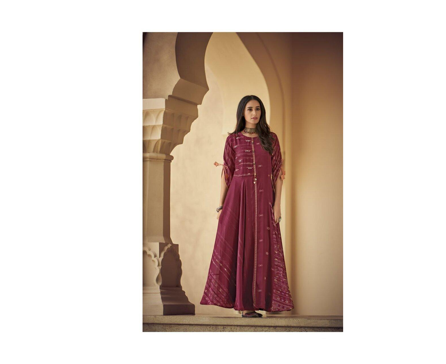 Navyaa Silk blend Bollywood Gown, Traditional dress, Beautiful Ethnic Set for women, Indian Festive wear Gown for Women, Latest design gown, Maroon color gown