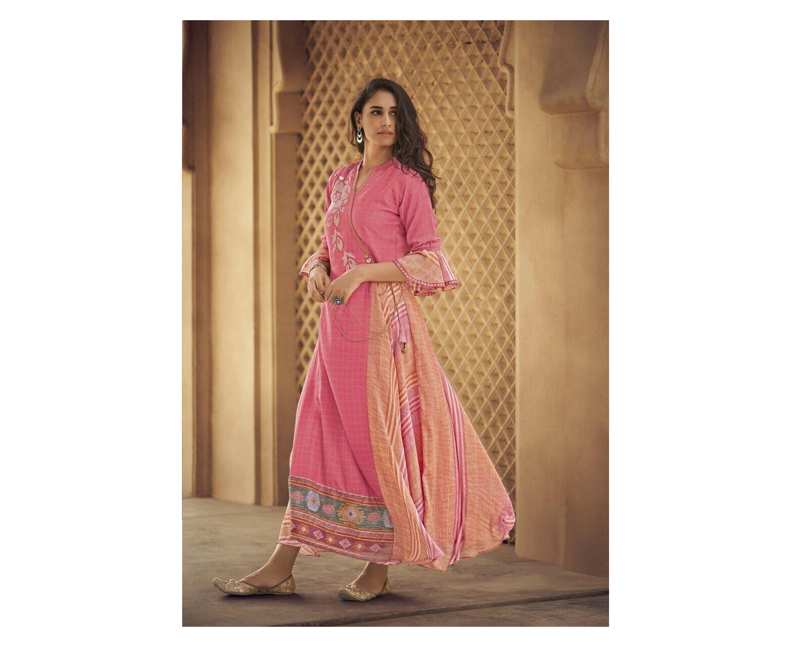 Navyaa Silk blend Bollywood Gown, Traditional dress, Beautiful Ethnic Set for women, Indian Festive wear Gown for Women, Latest design gown, Angarkha style Pink color gown