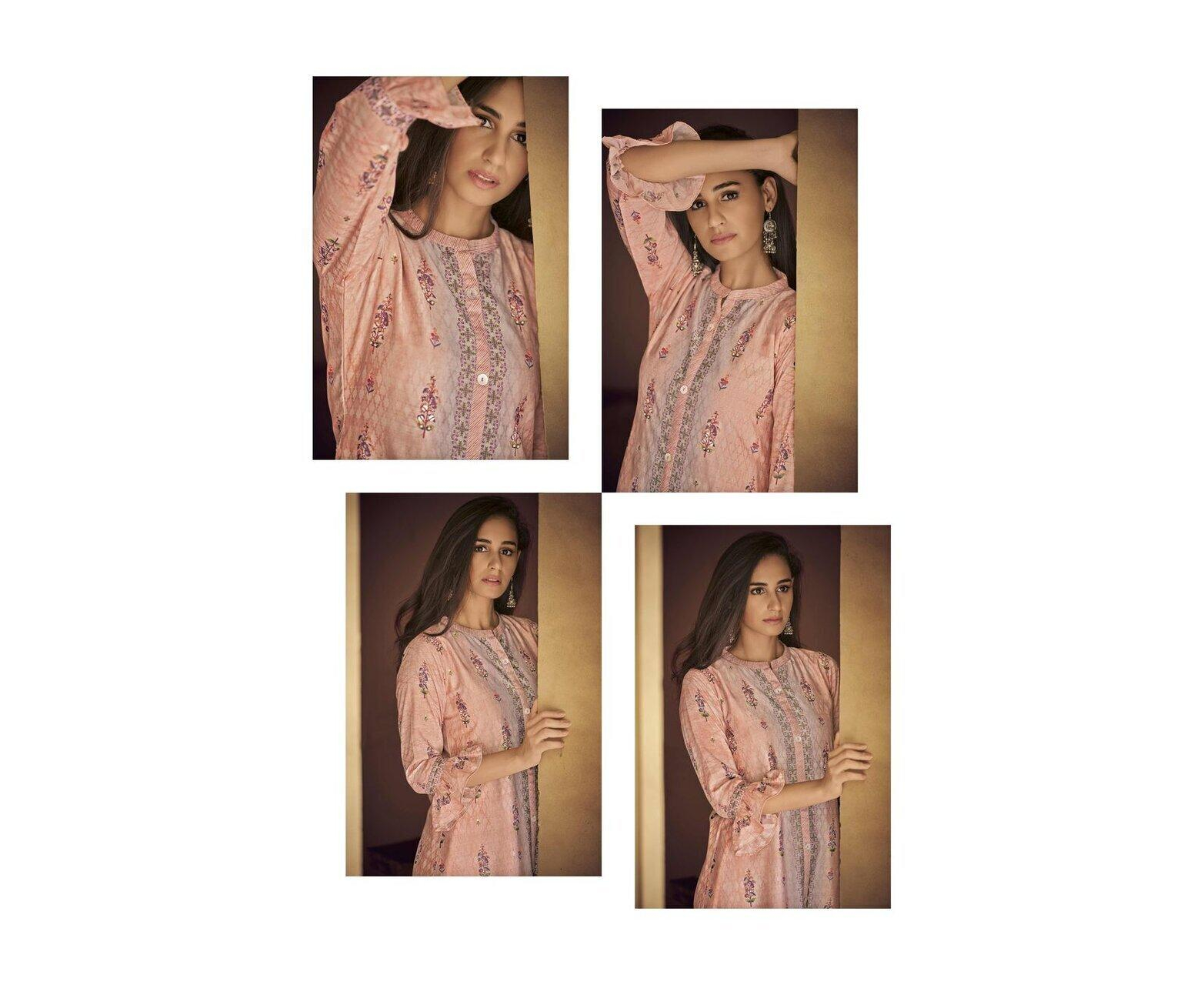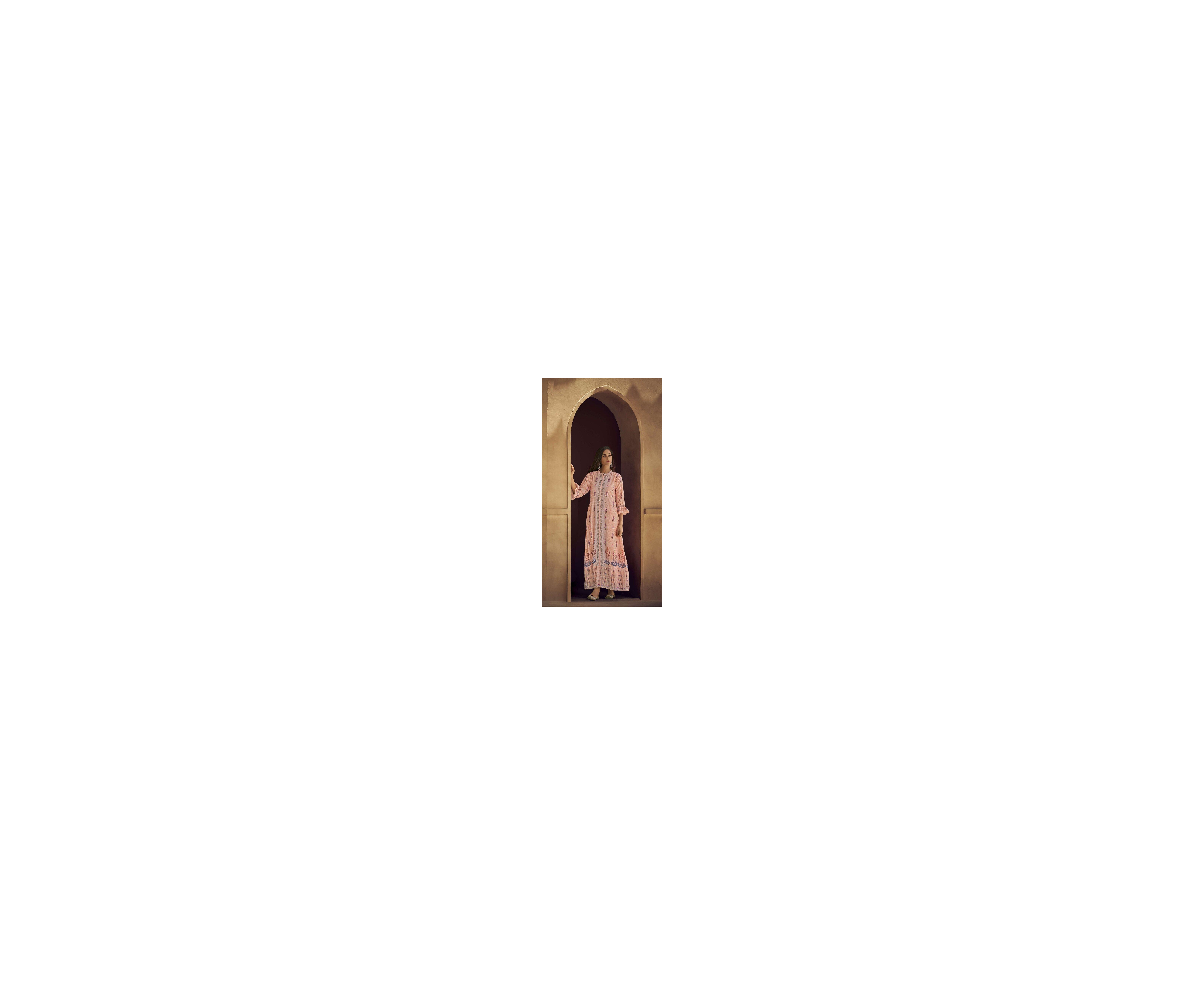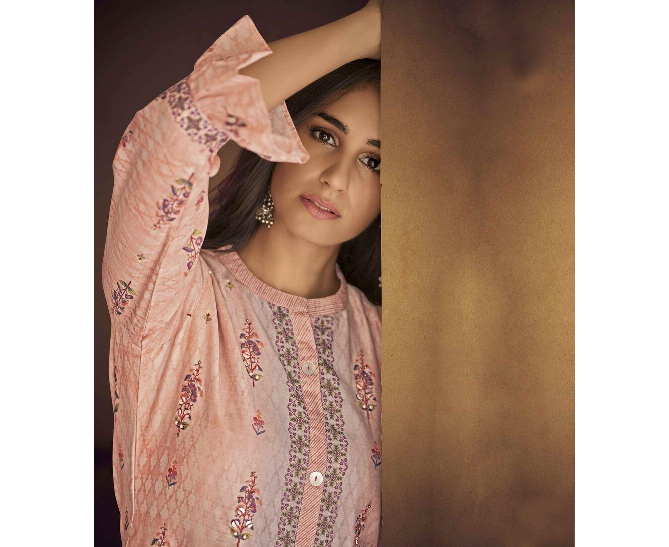 This Peach Silk-blend Gown is the perfect choice for a weekend outing. It is designed in an A-line dress style. The gown is printed all over with floral and abstract patterns. The flower print on the bodice is highlighted with sequins and thread embroidery.