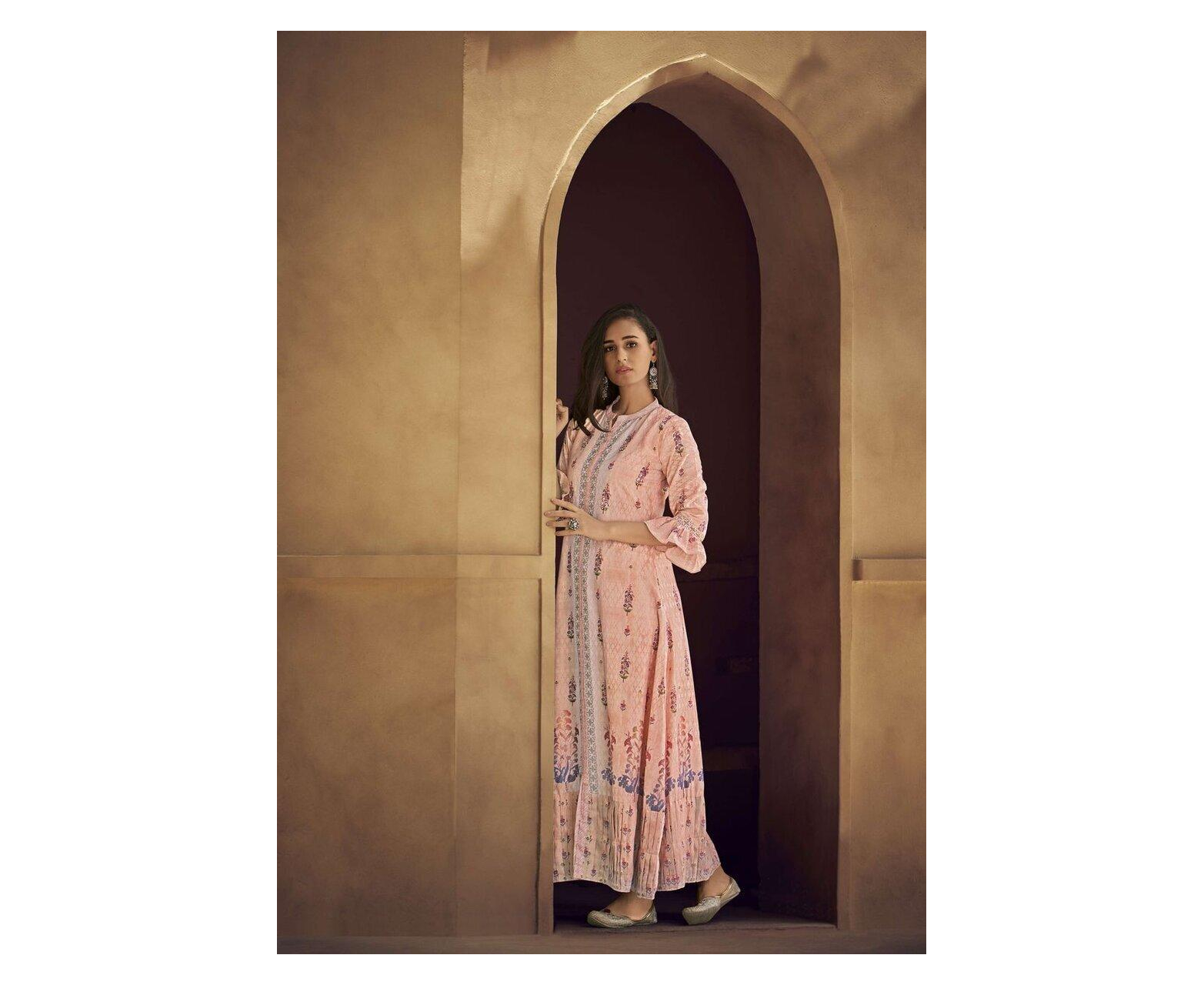 Navyaa Silk blend Bollywood Style Designer Gown, Traditional dress, Beautiful Ethnic Set for women, Indian Festive wear Gown for Women, Latest design gown, Peach color gown