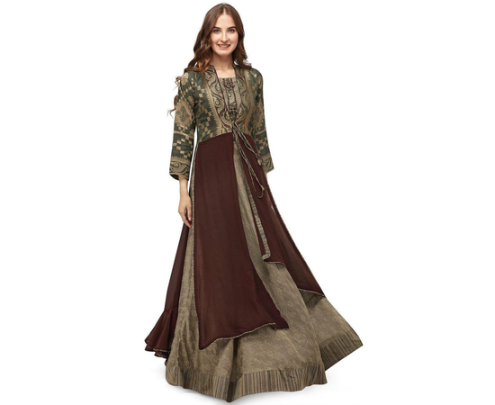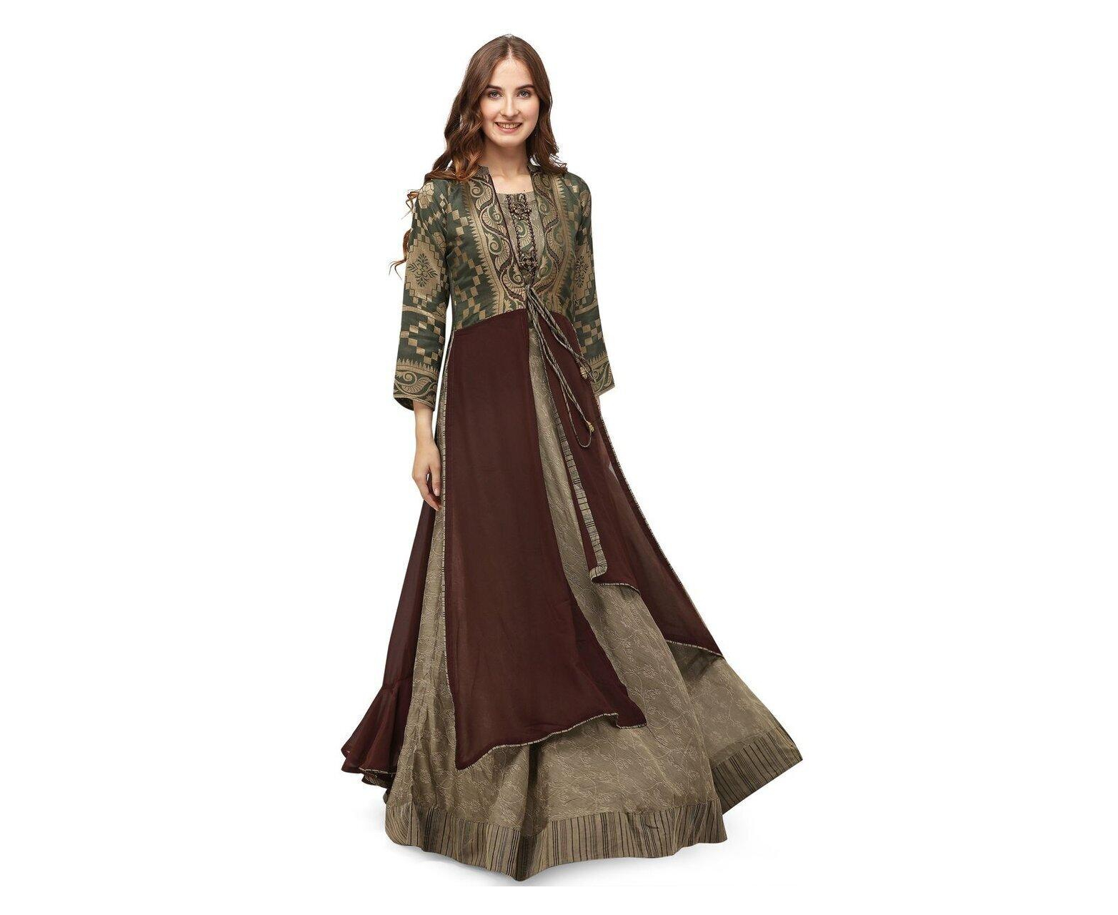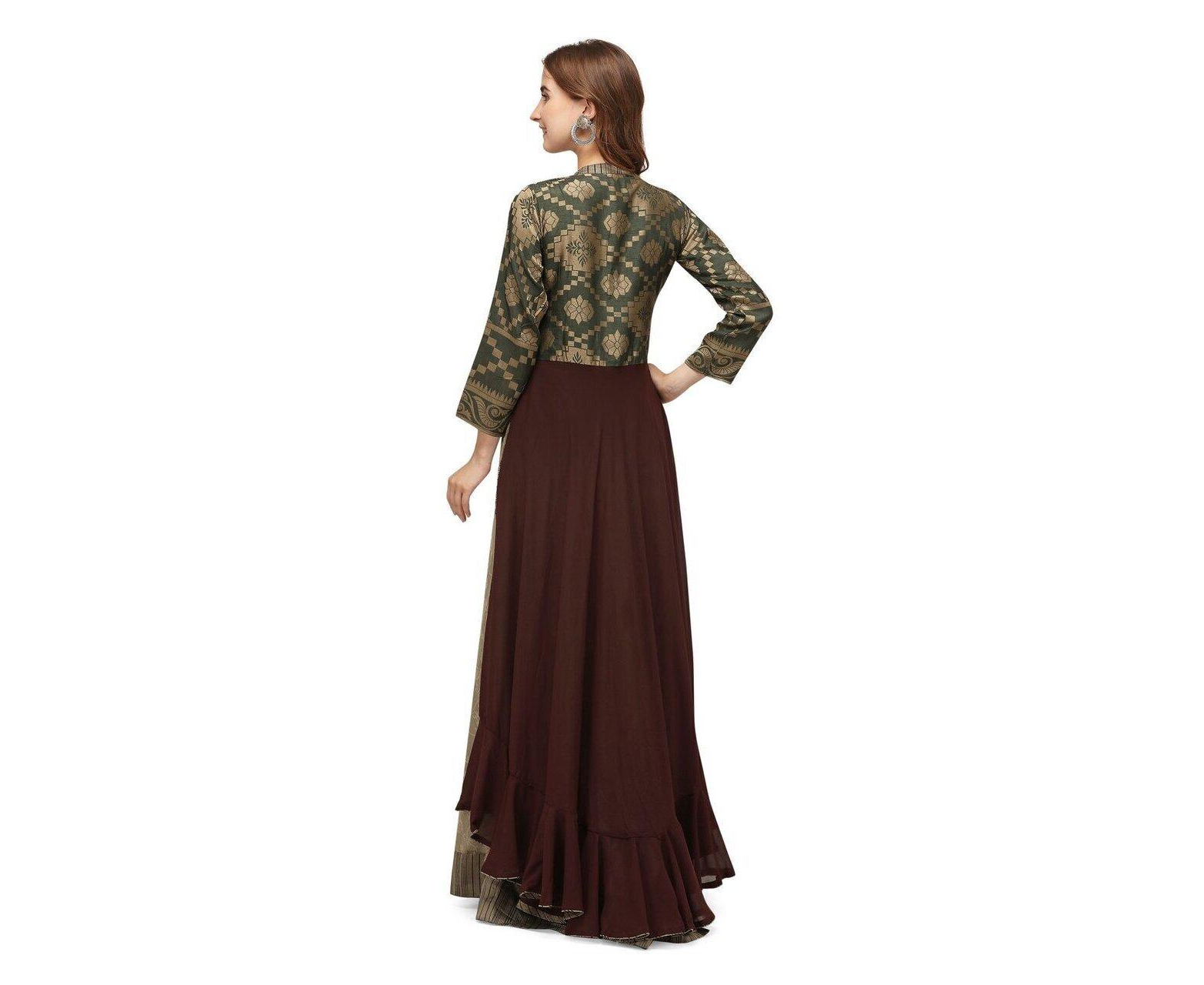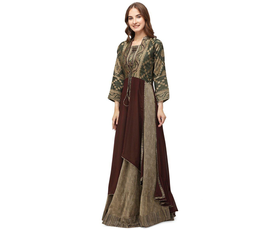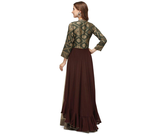 Navyaa Silk blend One Piece Gown, Traditional dress, Beautiful Ethnic Set for women, Indian Festive wear Gown for Women, Latest design gown, Royal green Maxi Dress