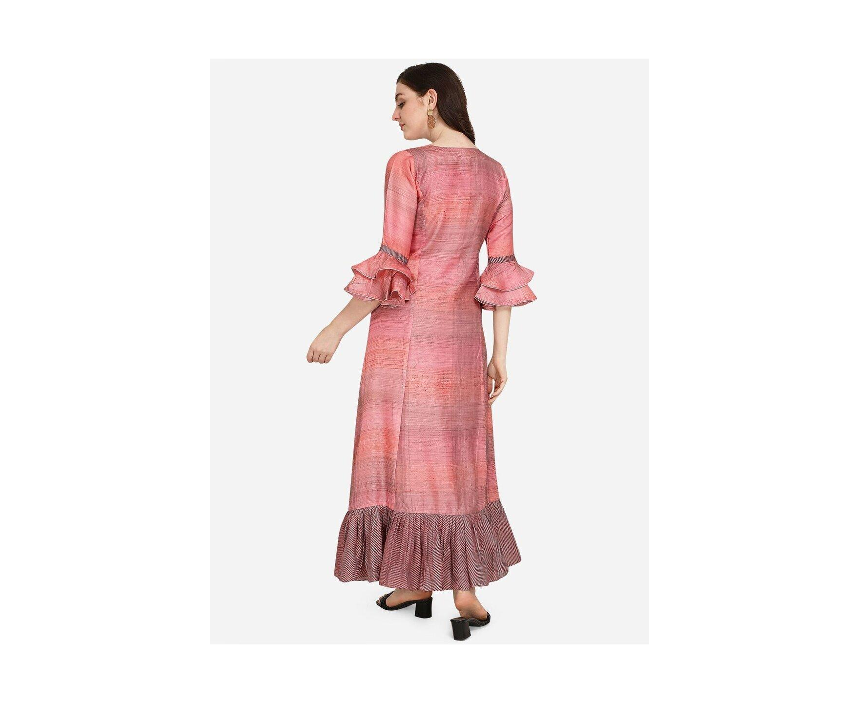 Navyaa Cotton blend Flared Maxi Gown, Exclusive design, Traditional dress, Beautiful Ethnic Set for women, Indian Festive wear Gown for Women, Latest designer Pink color Maxi Dress