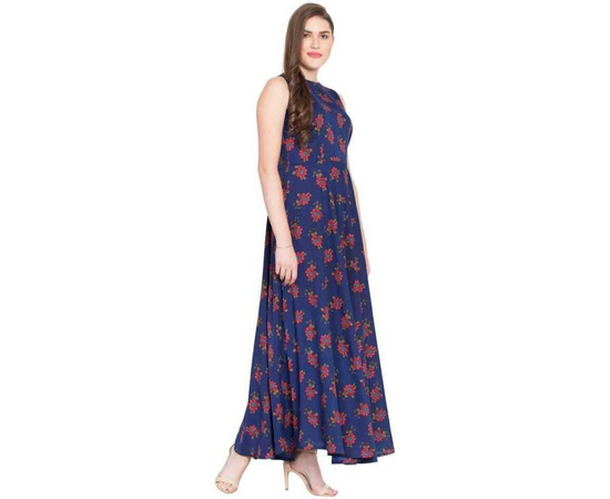 Women A-line Blue Dress | Floral Printed Dress| Maxi Dress | Lovely Dress Available In all Sizes