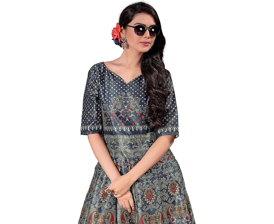 - Neck Pattern : U-Neck.; Sleeves : Half-sleeve.(14"); Flair : 4.50 mtr.; Style : A-Line.