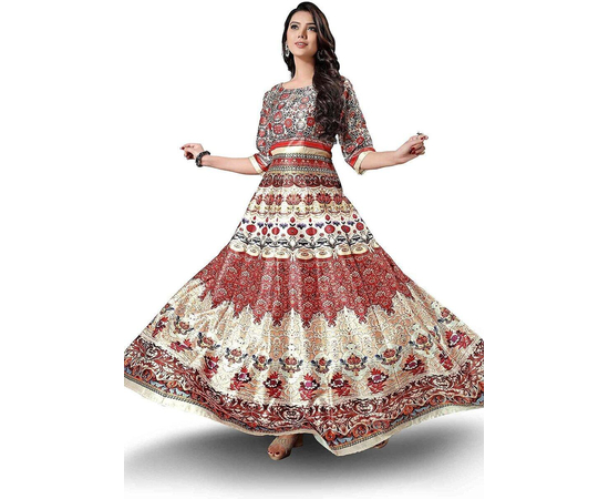 - Neck Pattern: U-Neck.; Sleeves : Half-sleeve.(14"); Flair : 4.50 meter.; Style: A-Line.