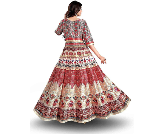 This is the season of the prints. Fun, dramatic and always making a statement, make the trend your own with this printed evening gown from Fabpixel. This floor-length gown is fabricated with exclusive Pure raw silk fabric and fussing. This gown comes with Nazmeen Dupatta Intricate Print Border. A great option for parties, social events, alike! Note: Fully lined with Shantoon. Because of its full-length gown does not include pants.