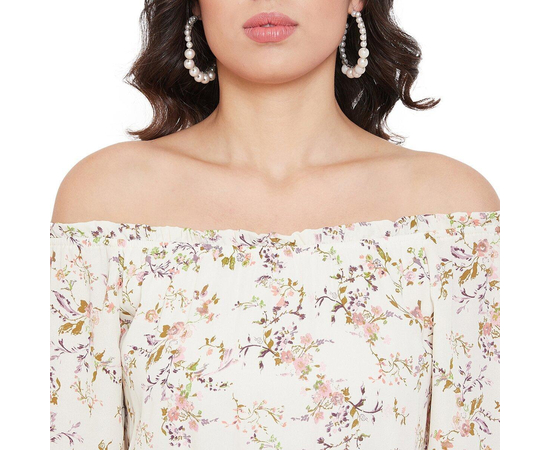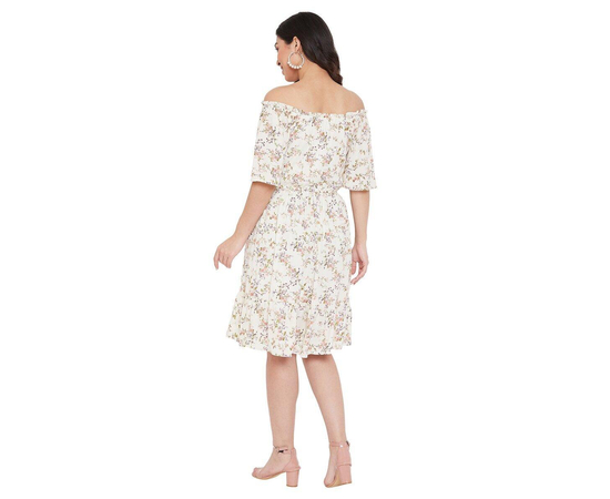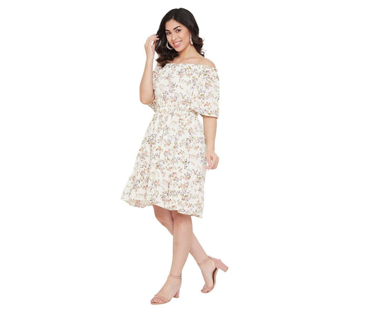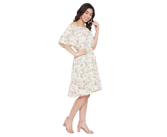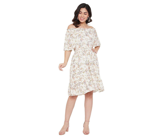 Women's Summer cool Floral With Cotton Lining Cream Dress | off shoulder dress | Midi Dress | Off-shoulder printed middy