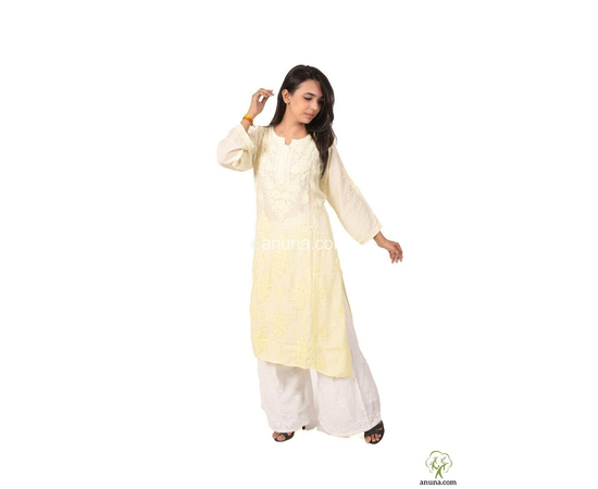 Step into elegance with this Lucknowi Handmade Ombre Chikankari Mukaish Kurta. Adorned with intricate hand-embroidered Chikankari and shimmering Mukaish work, this kurta is a masterpiece of craftsmanship. The ombre shading adds a graceful touch, making it perfect for festive occasions, celebrations, or evening gatherings. Pair it with classic palazzos or a dupatta for a regal look.