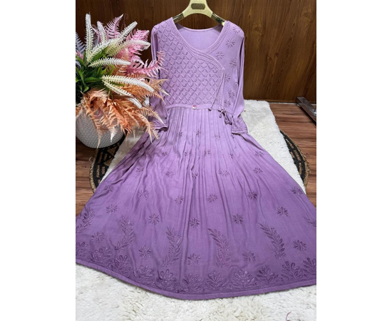 • Package Includes: 1 Hand-Embroidered Chikankari Rayon Angrakha Gown