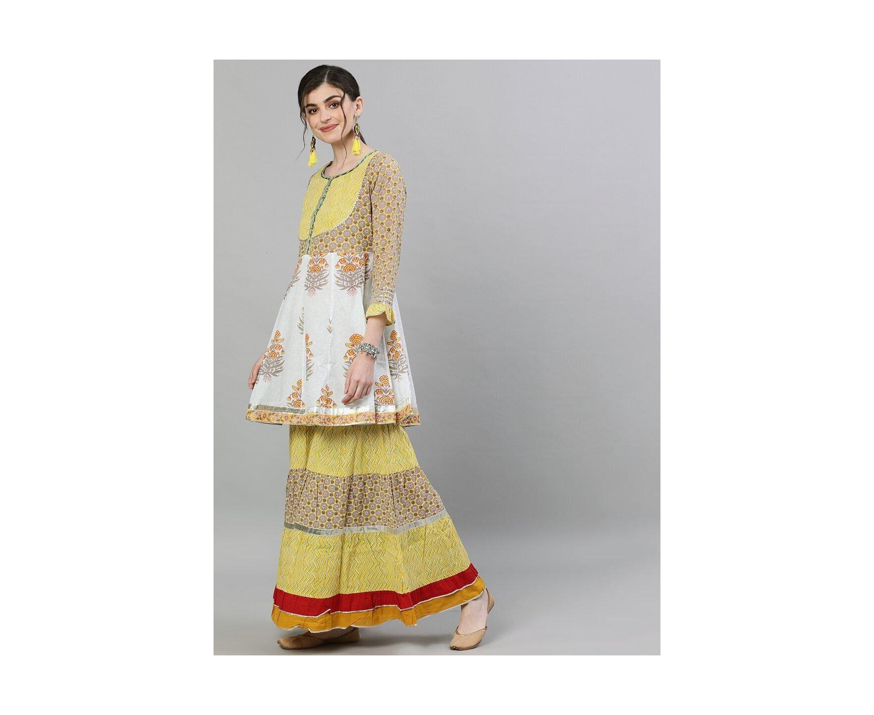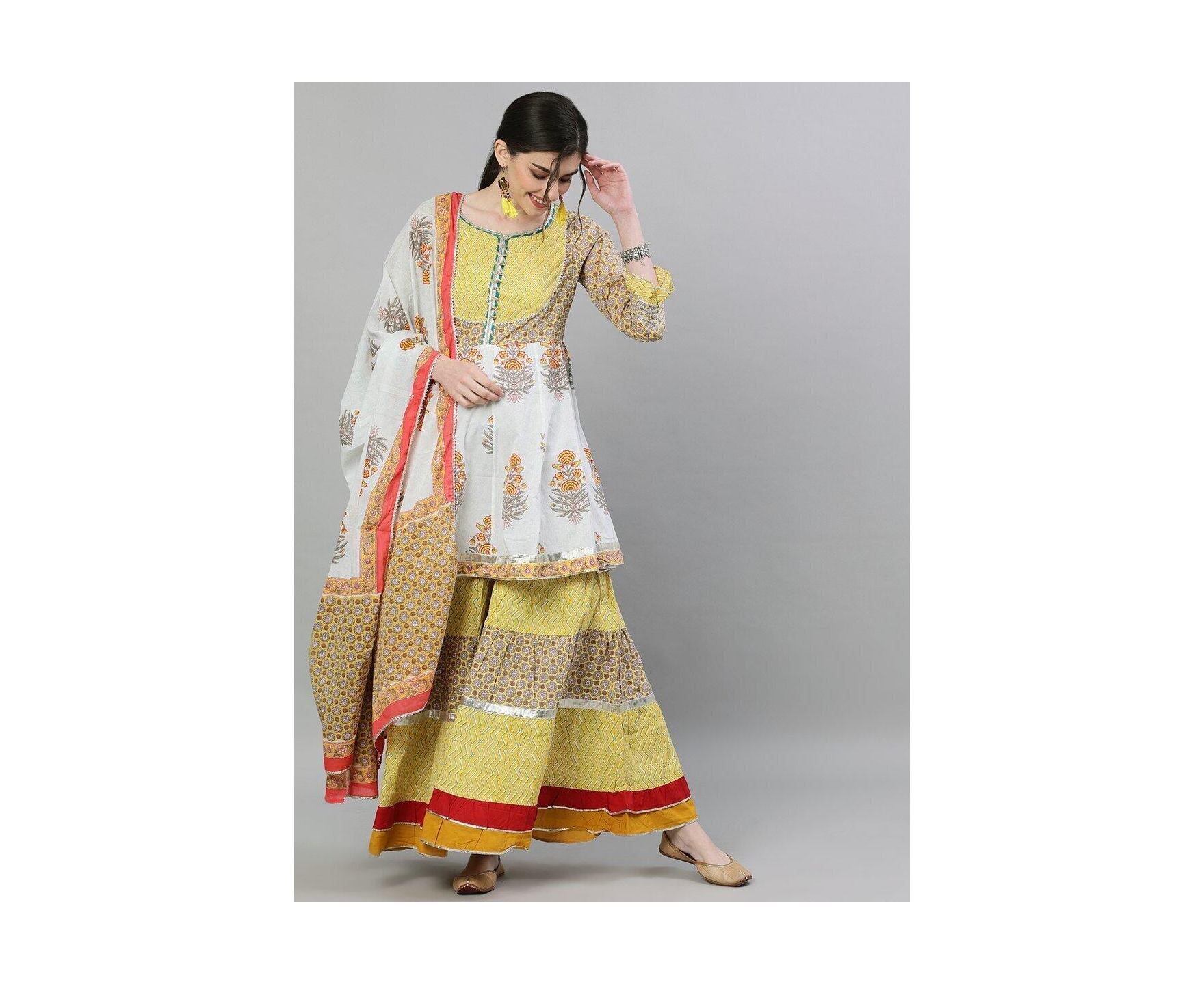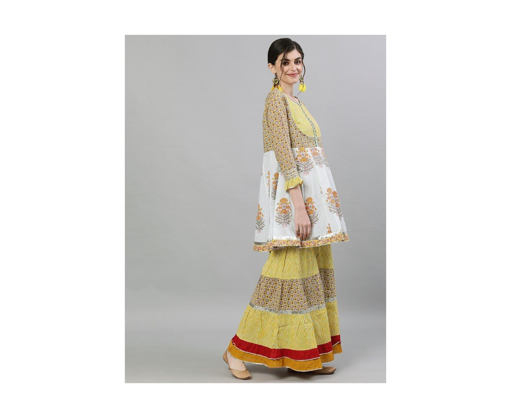 Pattern : Blue Yoke Embroidered A-Line Kurta Sharara Set