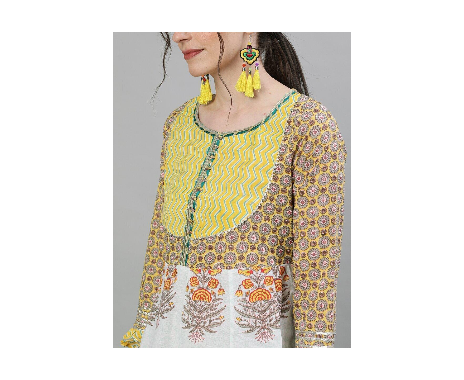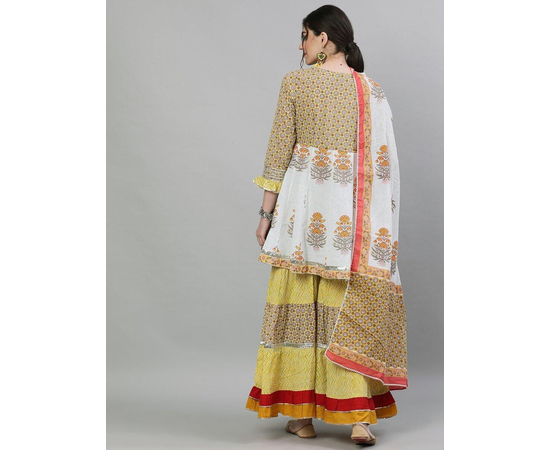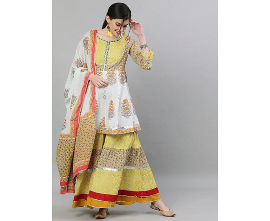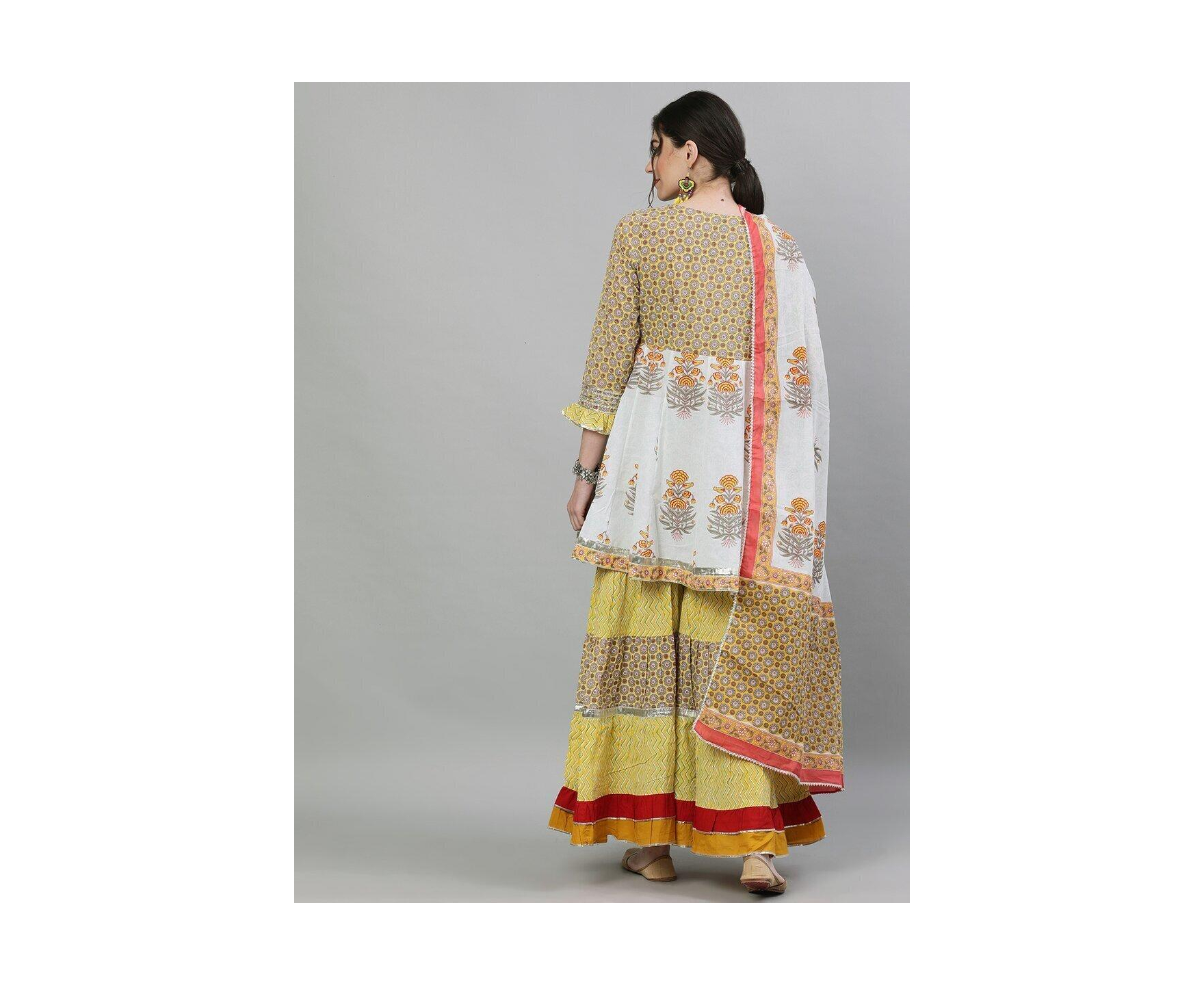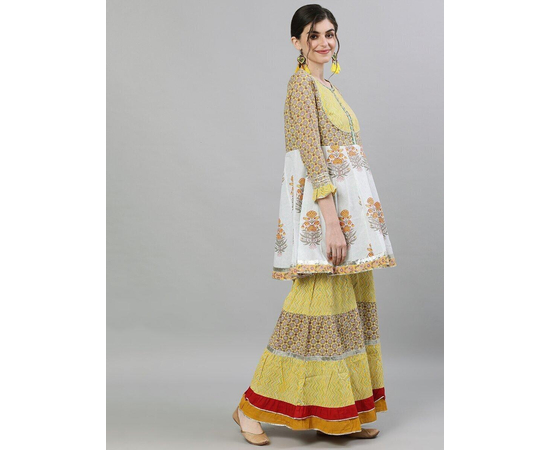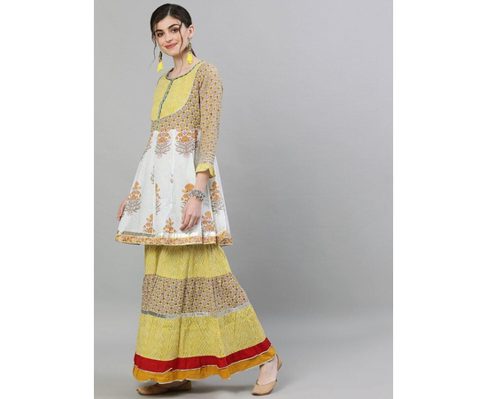 Pattern : Blue Yoke Embroidered A-Line Kurta Sharara Set
