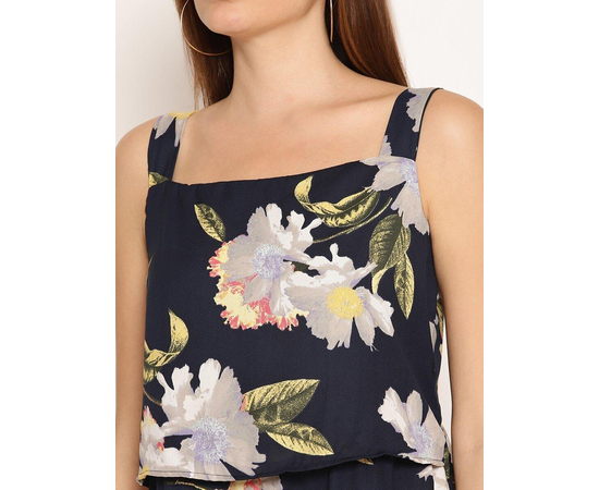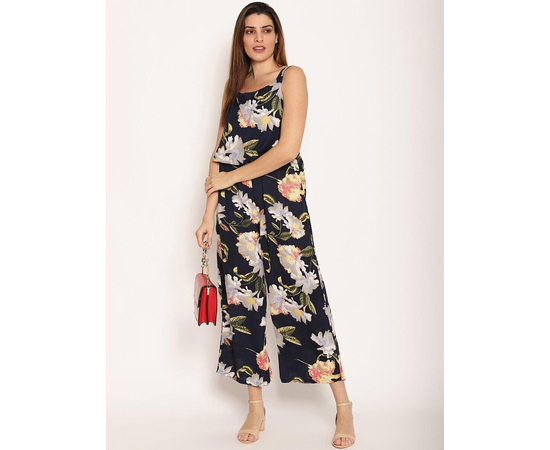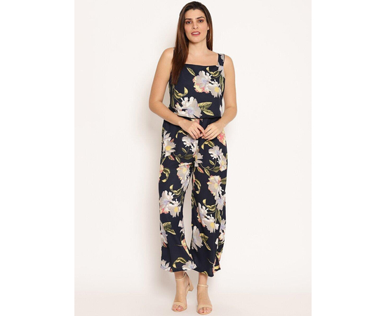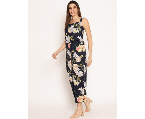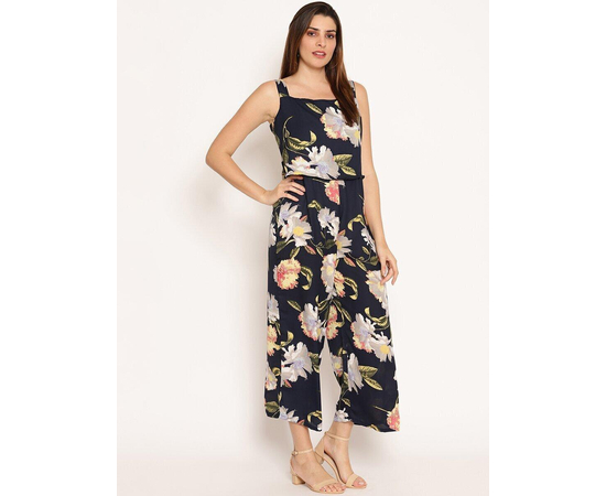 Women's Summer Cool Floral Navy Blue Jumpsuit Women Jumpsuit Strap Sleeves Deep Floral Jumpsuit