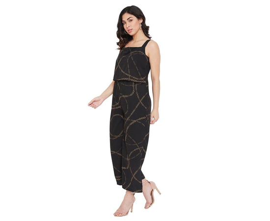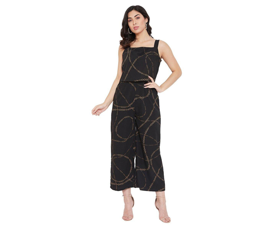 Women's Summer cool Black Printed Jumpsuit, Cotton romper, Wide-leg jumpsuit, summercool separates, Backless Overalls, Bohemian Romper