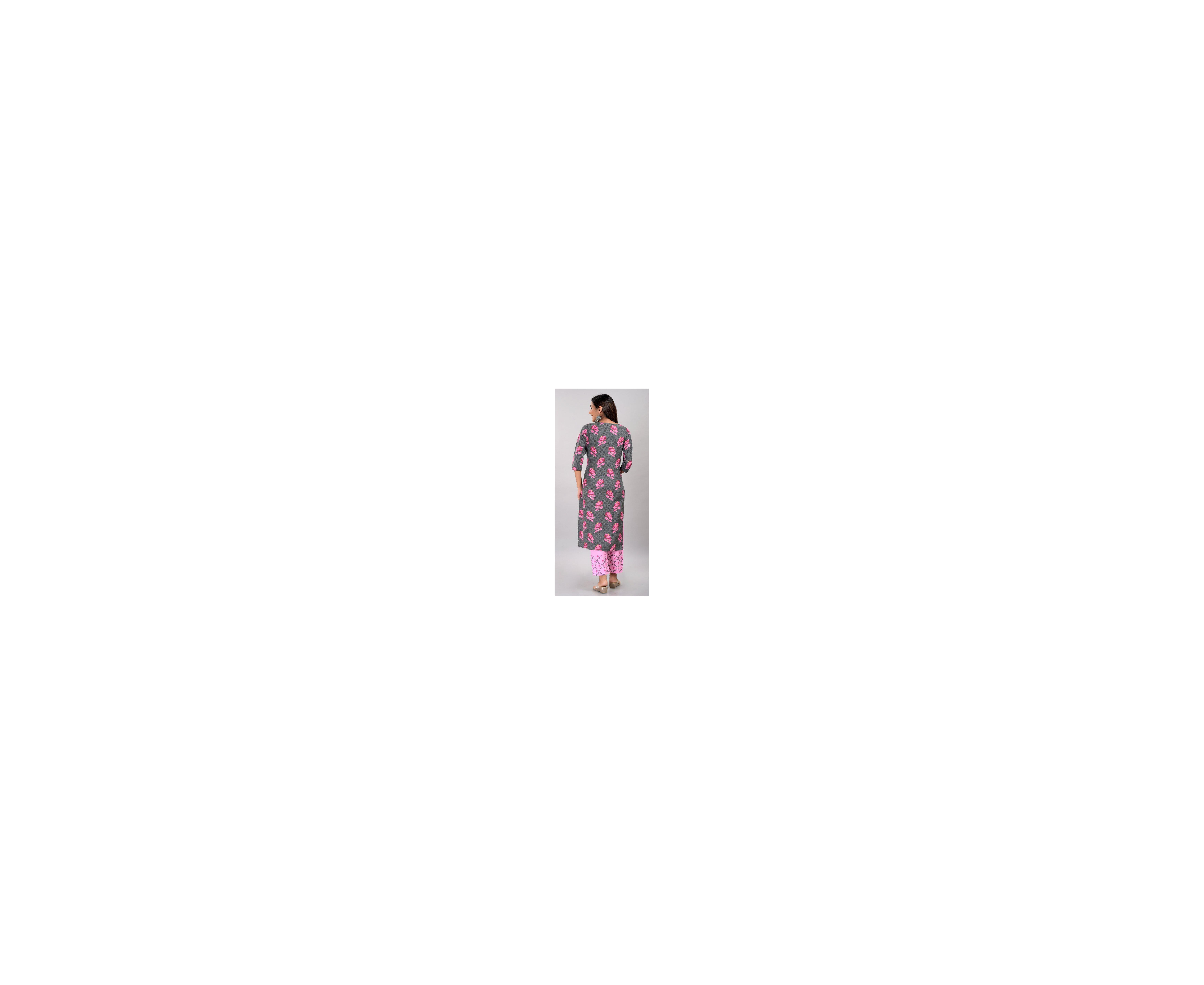 Grey Floral Kurta With Pink Printed Pant, Indian Ethnic Set, Partywear Set, Festival Clothing, Traditional Kurta with Trouser