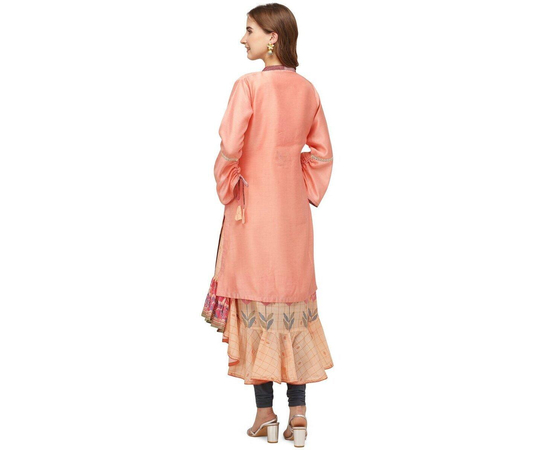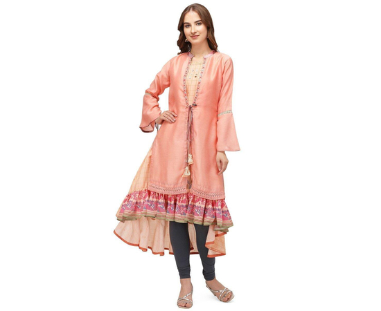 This Pink Cotton-blend Kurti is the perfect choice for a weekend outing. It is designed in an asymmetrical dress style with a jacket. Kurta and Kurti for selfies: the design is made for selfies. The design is a favorite for picnics, outdoor, traveling, cycling, dancing, and stage performance. Use it as casual or formal wear for office, shopping, daily wear in a home, college, family, meetings, festive occasions