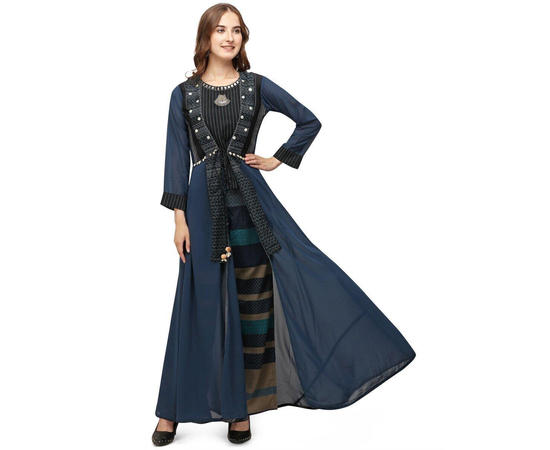 Indian Flaunt Sartorial Elegance When You Wear This Kurti. This Kurti With Palazzo and Jacket is designed according to the latest trends with absolute perfection which will increase your wardrobe collection as you wear this beautiful Kurti from the house of Pure Comfort. This is lightweight material Kurti and it will be soft on your skin. Look Classy And Stylish In This Piece And Revel In The Comfort Of The Soft Fabric. Kurta has a round neck with 3/4th sleeve and Palazzo with Jacket.