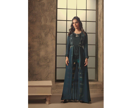 Navyaa short kurti top, Pant and Jacket sea Green Color, Top Palazzo with long shrug, Indian Festive wear Kurti for Women, Diwali Dress, Christmas Gift, Beautiful Ethnic 3 pc Set for women
