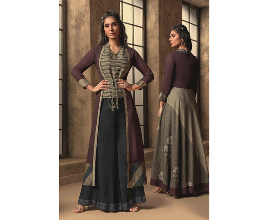 Navyaa short kurti top with Palazzo and Jacket, top with sharara pants and Multicolor long shrug, Women's Ethnic wear kurti, party wear dress, Latest Designer Exclusive outfit