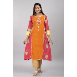 Women New Fashionable Designer Bollywood Style Party Wear Kurta, Indian Ethnic Kurta, Trendy Kurta, Awesome Design Kurta, Pink and Orange kurta with print an...