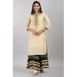 Beautiful Ethnic Designer High Quality Rayon Striped Embroidered Kurta With Black Plazoo Indian Ethnic Wear Dress