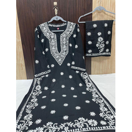 Free Inner Lucknowi Handmade Chikankari Fancy Allover Jaal work Georgette Kurta/Kurti Set For Women Party wear Women dress Kurta Top Tunic