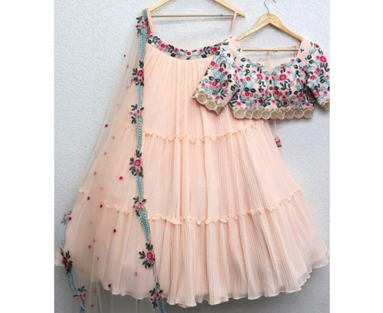 - Lehenga : Faux Georgette With crush Work ruffle style lehenga