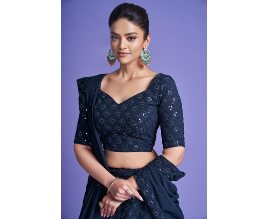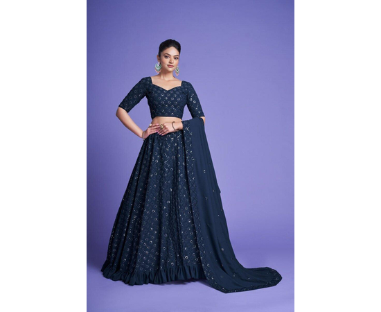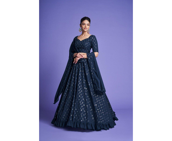 Teal Blue Sequins Embroidered Georgette Lehenga Choli, Georgette Designer Lehenga Choli in Morpeach, Best Color Lehenga Choli For women