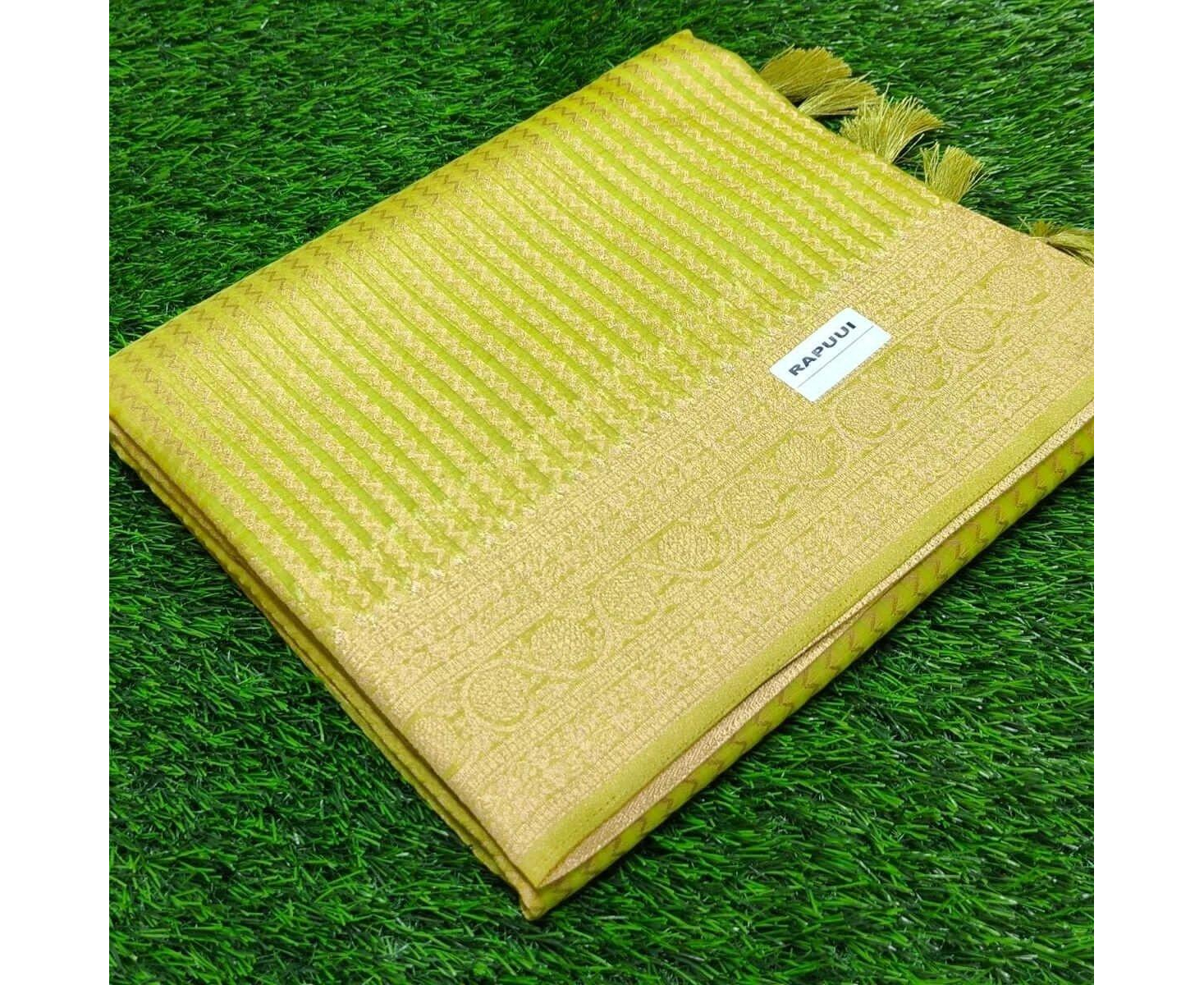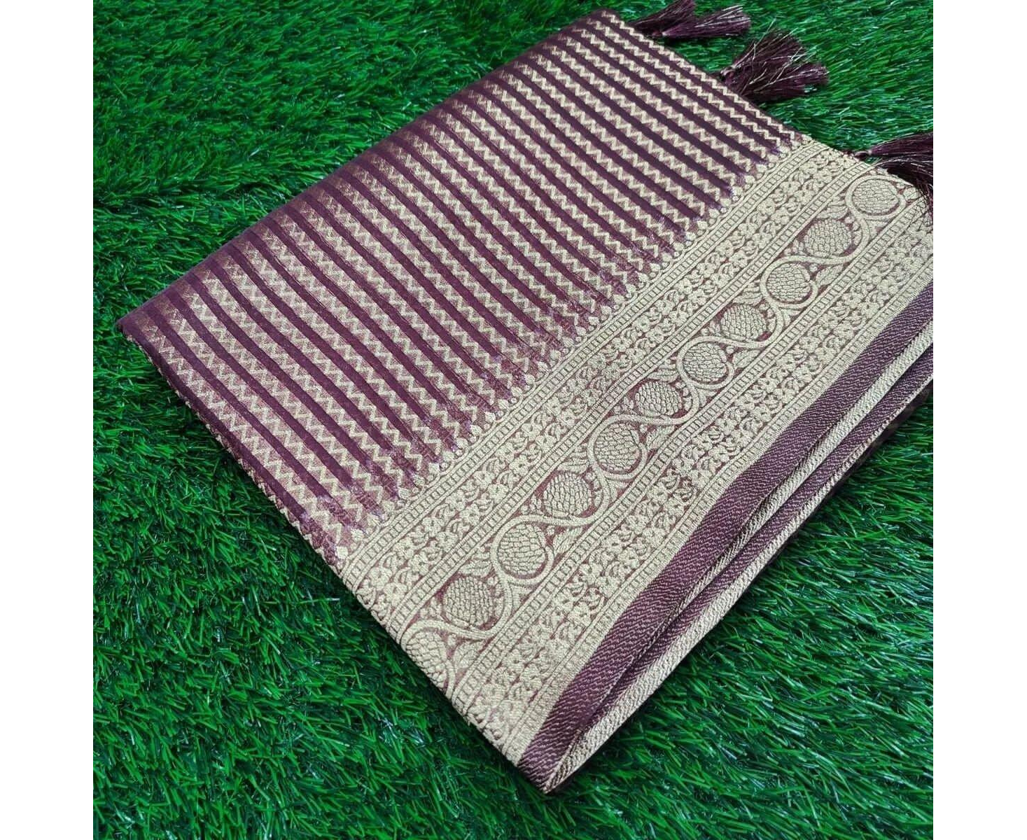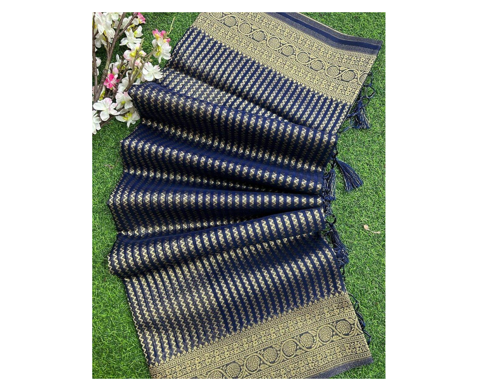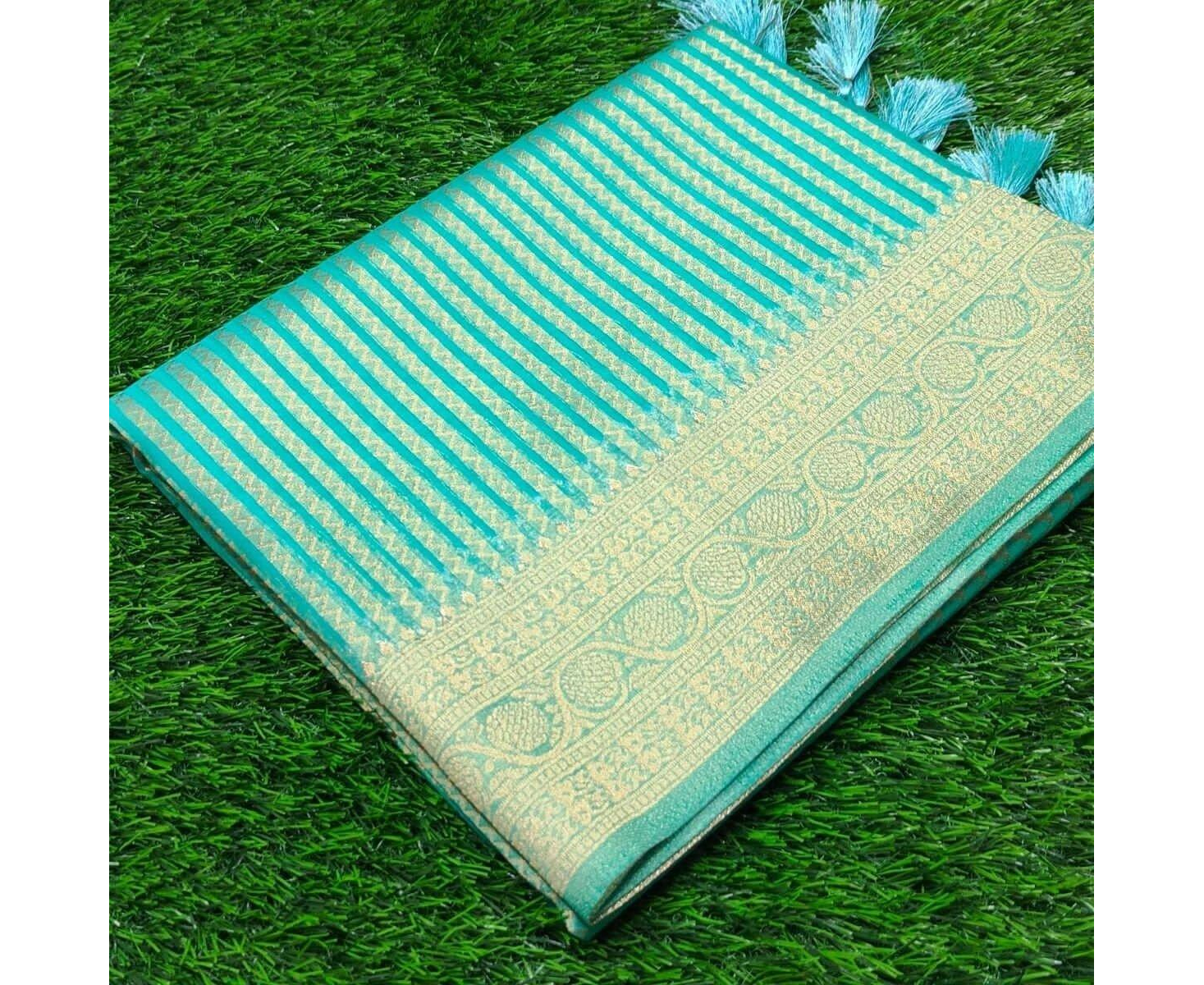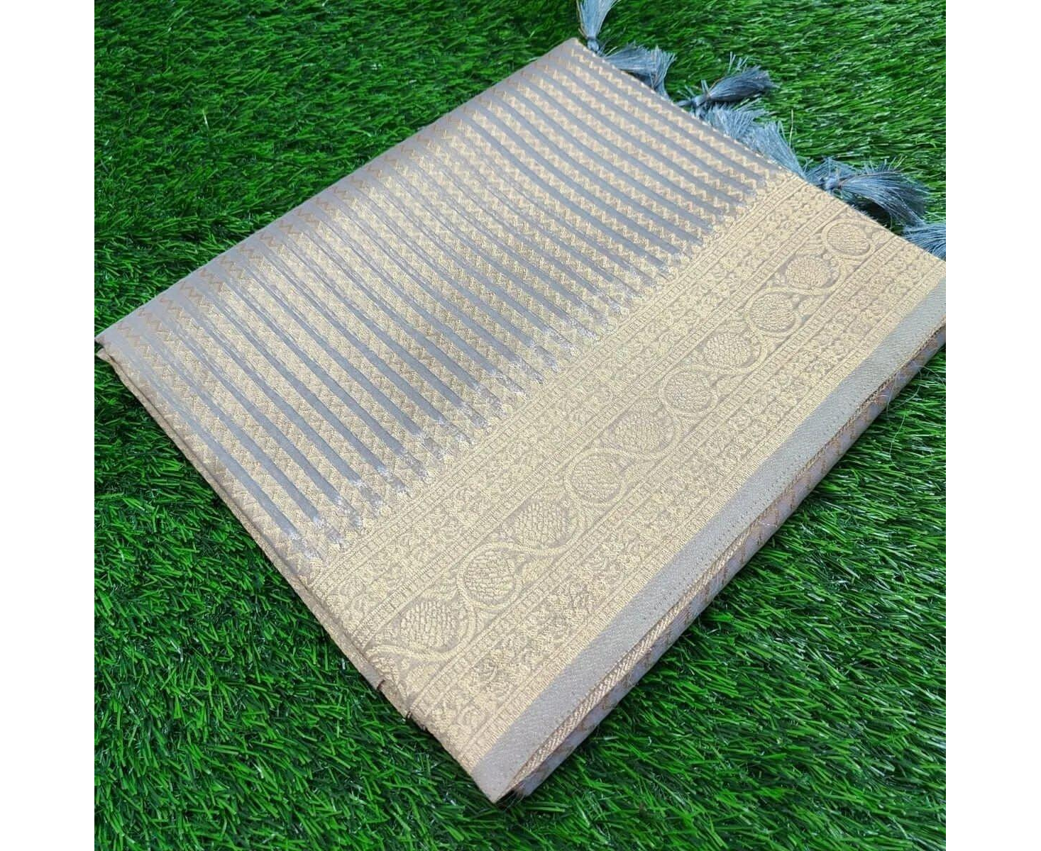 Double Zari: "Zari" refers to metallic thread, often made of gold or silver, that is woven into the fabric to create intricate patterns and designs. "Double zari" would imply that there are two layers of this metallic thread woven into the saree, which can result in a more elaborate and shimmering appearance.