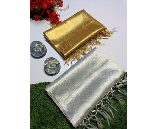 Elegance Woven in Threads: Handmade Banarasi Tissue Kota Silk Saree with Soft fabric kora Organza Blouse