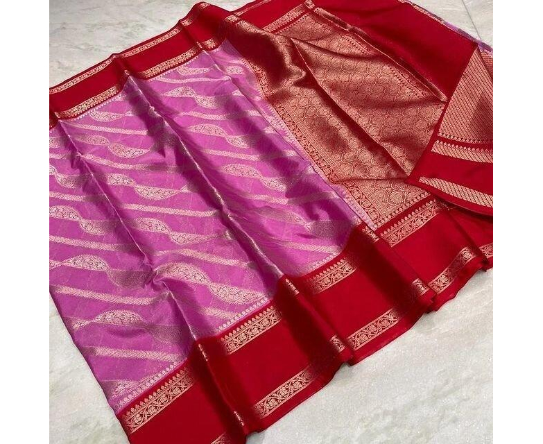 Zari Work: Warm silk Banarasi sarees are characterized by their opulent zari work. The zari is used to create elaborate motifs, borders, and pallus (the hanging end of the saree). The intricate zari work adds a touch of grandeur and elegance to the saree.