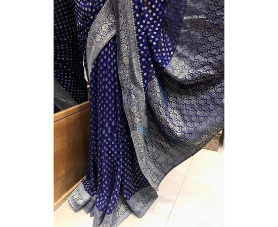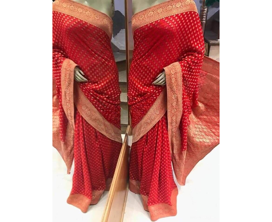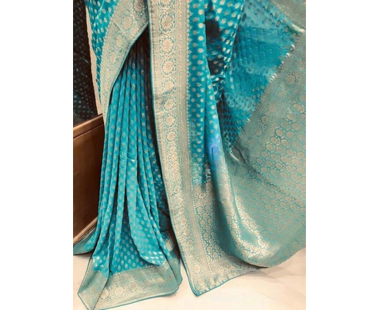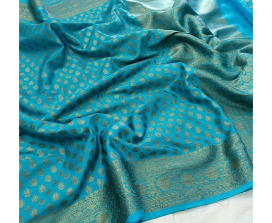 Color Options: Semi Georgette Meena Jaal Double Zari Sarees come in a wide range of colors, both bold and pastel. These colors can complement various skin tones and occasions.