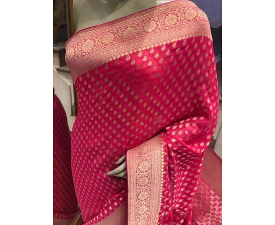 Intricate Patterns: The combination of meena jaal and double zari work results in intricate and ornate patterns all over the saree. This detailing can cover the entire saree or be concentrated on the border and pallu.