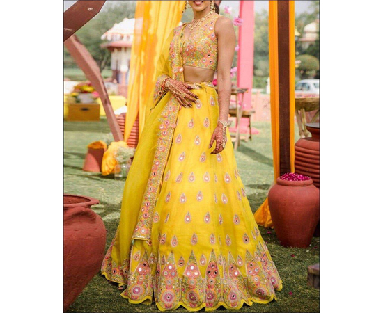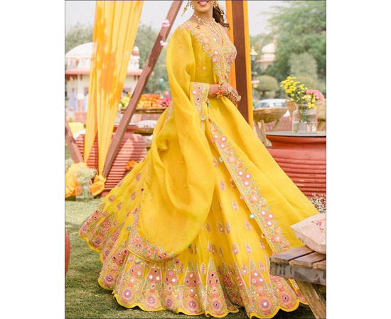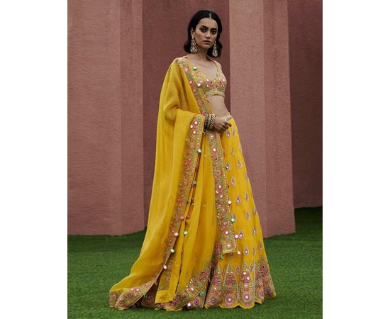 Designer Lehenga Choli For Wedding and party Wear Lehenga, Exclusive Yellow color Georgette Lehenga Choli, Gorgeous Party Wear Lehenga, Traditional Lehenga Choli Set Women.