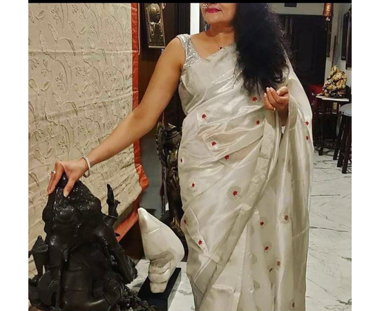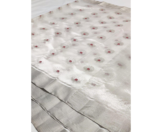 A High Quality Beautiful White Color Pure Katan Silk Banarasi Saree with Silver Zari work all over. The entire saree has delicate silver zari Meenakari work. It has a gold Zari border and heavy brocade Pallu. A classic traditional Banarasi saree for all wedding celebrations. Vendor has personally handpicked the saree from the manufacturer in Banaras Varanasi, India. The saree comes with unstitch attached blouse.
