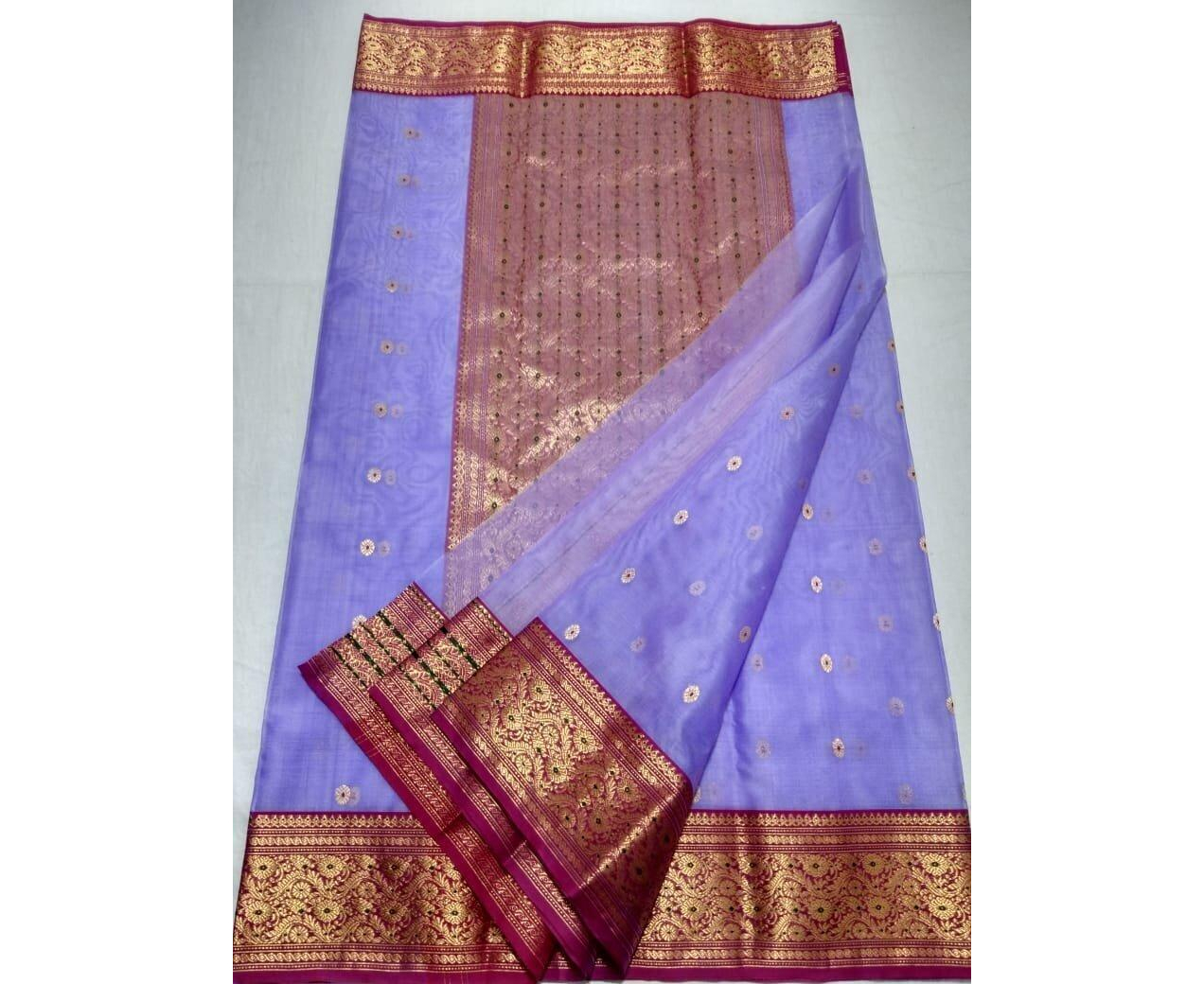Pure handloom meena border and booti Kataan silk saree with Blouse Piece/Pure Handwoven Katan Silk Beautiful Mina Kari Butis Luxurious Pallu Heavy Nakkashi Border