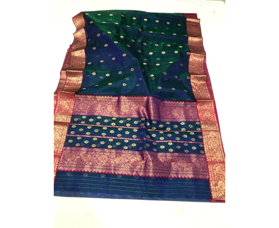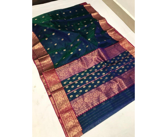 So appealing in its textured appearance and perfect in its imperfections! This gorgeous saree is made of woven in beautiful silk blend with jacquard work booti and traditional look border. Beautiful jacquard work booti across the body of the saree in the finest jacquard weave. These sarees are among the finest sarees in India and are known for their gold and silver brocade or zari, fine silk and opulent embroidery. The saree are made of finely woven silk & are enhanced decorated with intricate design because of these engravings, are relatively heavy.