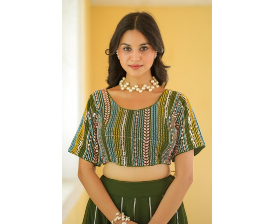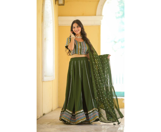 Introducing our Women's Lehenga - the perfect addition to your festive wardrobe. This Partywear Lehenga set boasts intricate embroidery and luxurious fabrics, making it an ideal choice for any special occasion. Whether you're attending a wedding or celebrating a festival, this Lehenga set is sure to turn heads. Crafted with the utmost attention to detail, this Women's Lehenga features a stunning design that combines traditional elegance with modern sophistication. The intricate embroidery on the blouse and skirt adds a touch of glamour to the ensemble, while the flowing drapes create a flattering silhouette. Made with high-quality materials, this Festive Lehenga set is both durable and comfortable to wear.