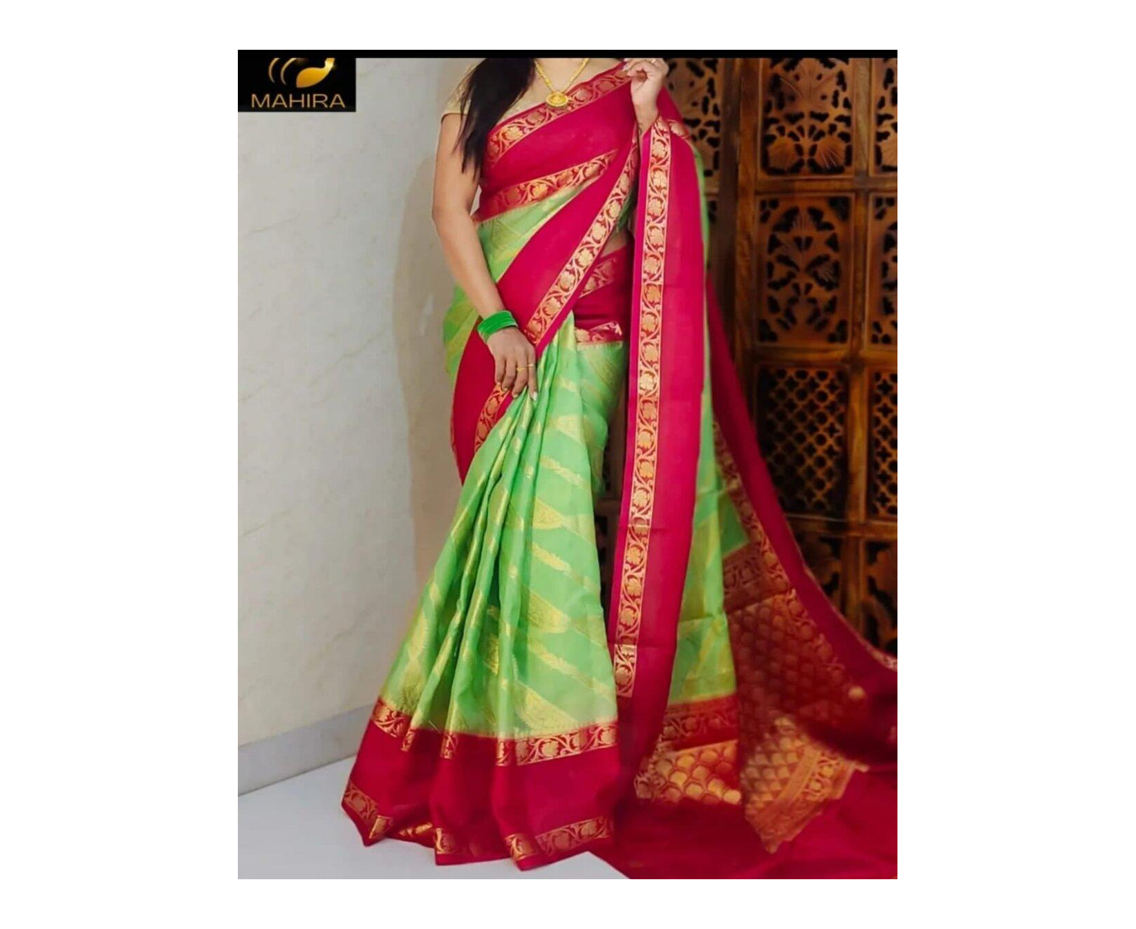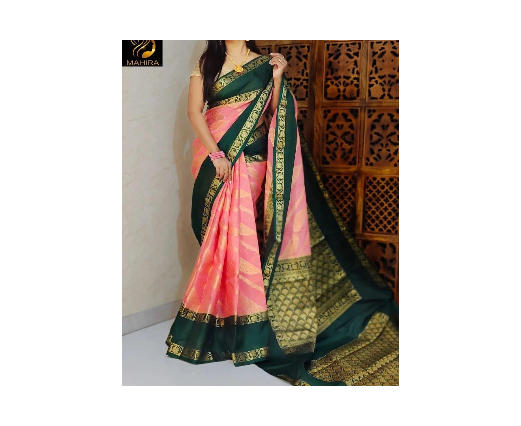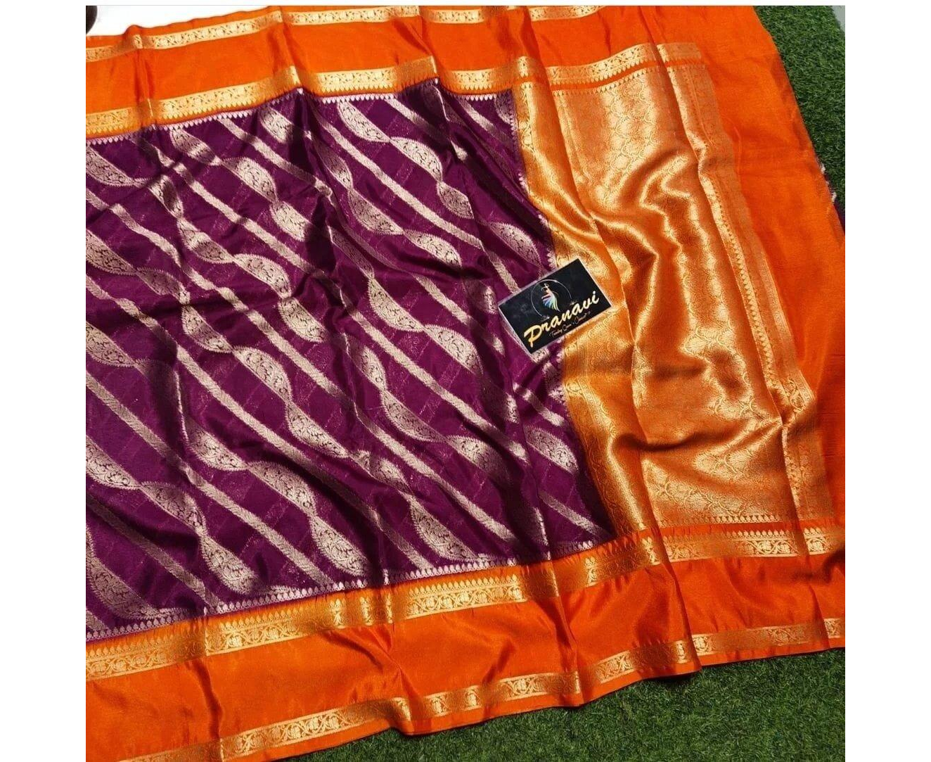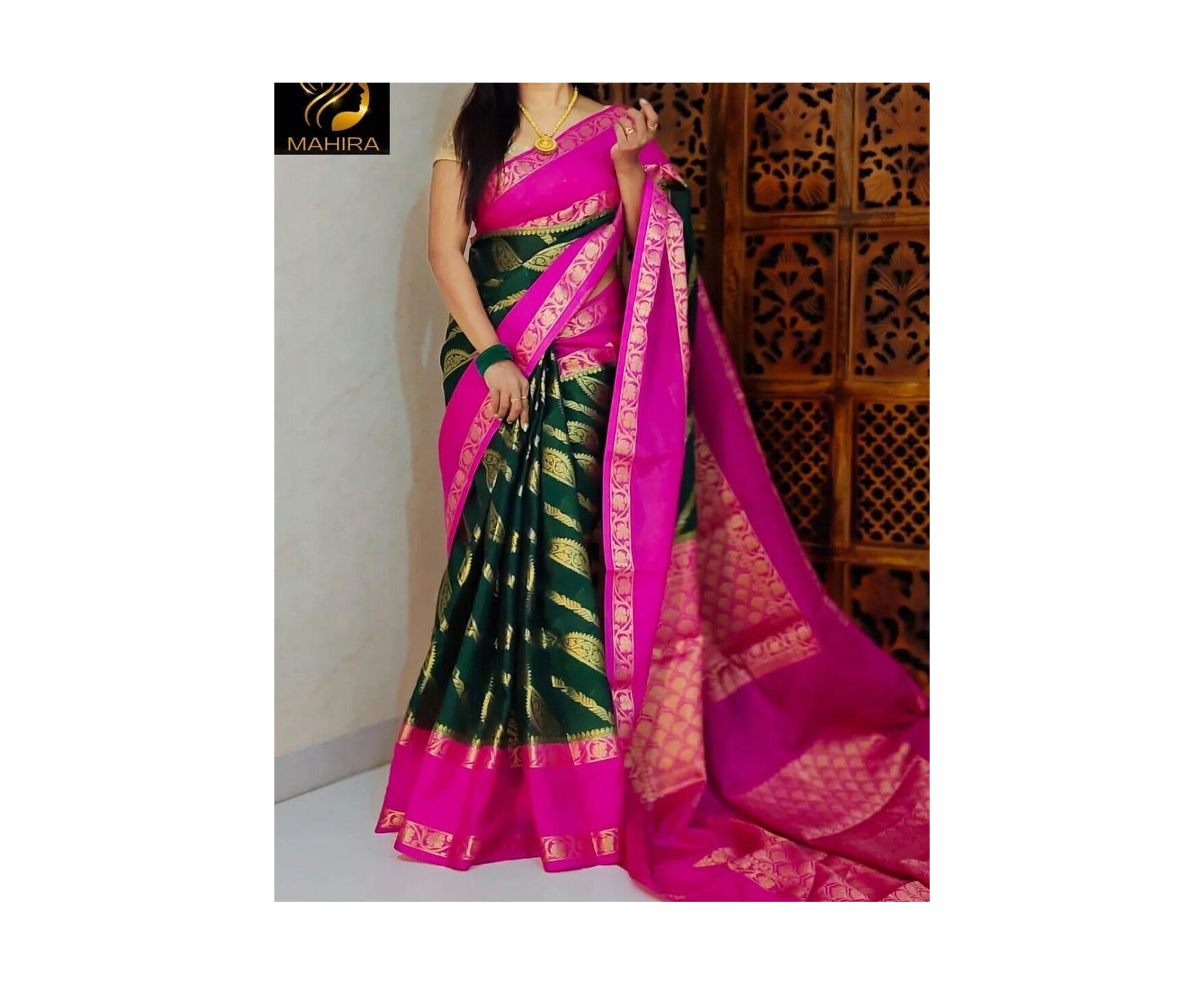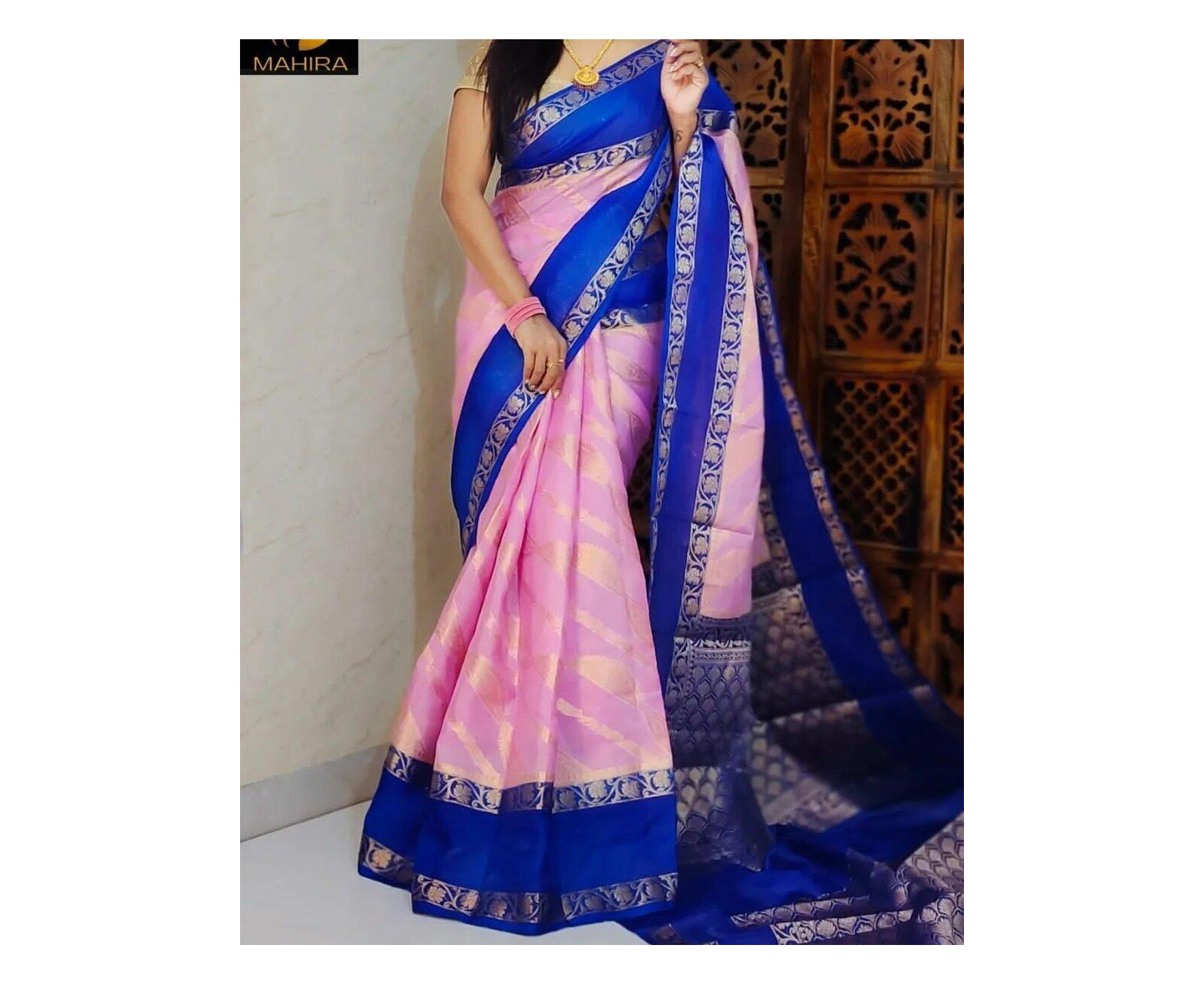 Handmade Embrace the Luxurious Tradition of Banarasi Warm Silk Sarees with Contras pallu blouse border Broket blouse design