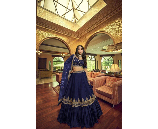 Handmade Designer Royal Collection Navy Blue Color Heavy Silk Fabric Embroidery Work Party wear Lehenga Choli for Girl’s and Women’s Fashion