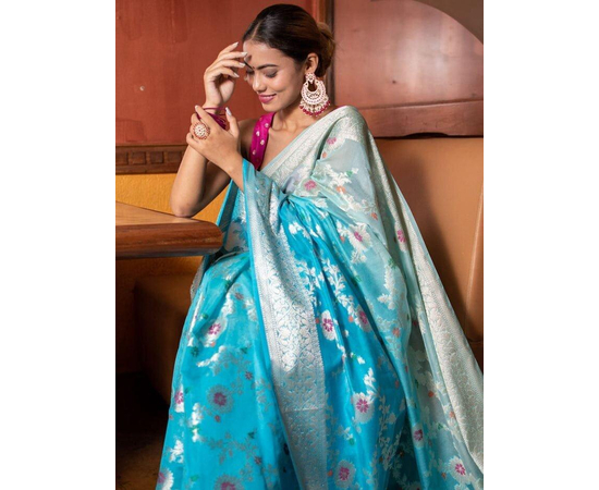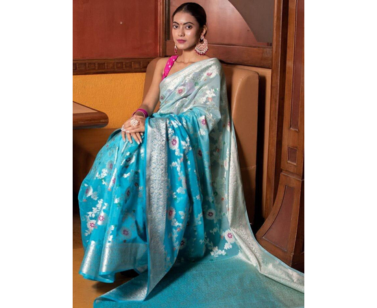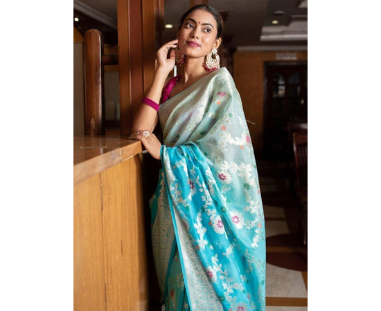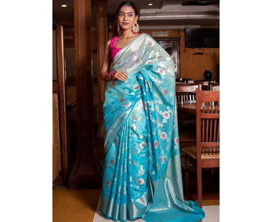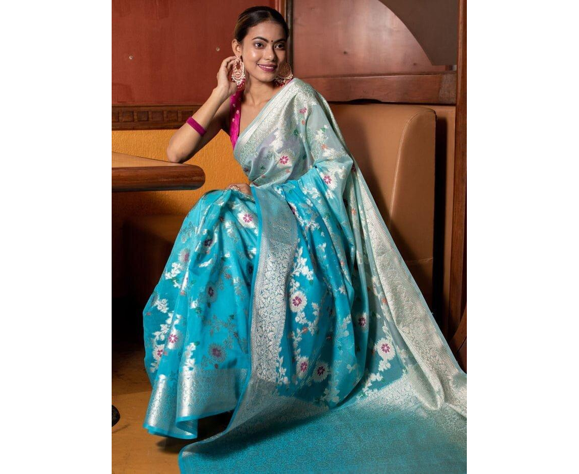 Occasion: Benarasi sarees, including those made from Sami Georgette Silk with meena jaal work, are often considered suitable for weddings, festive occasions, and other formal events due to their rich and luxurious appearance.