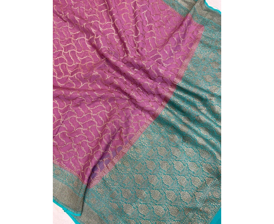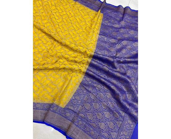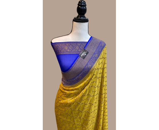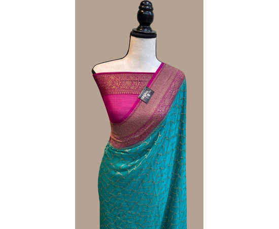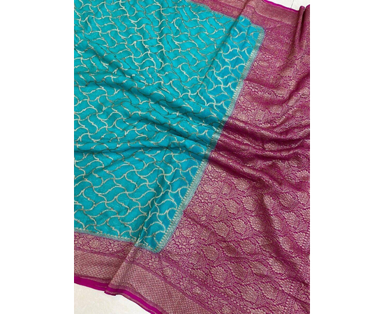 Handmade Semi Georgette Meemzari jaal contrast pallu border plain with border blouse banarasi saree