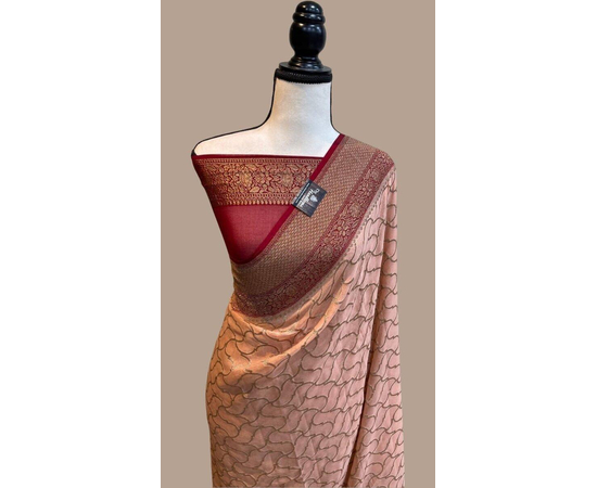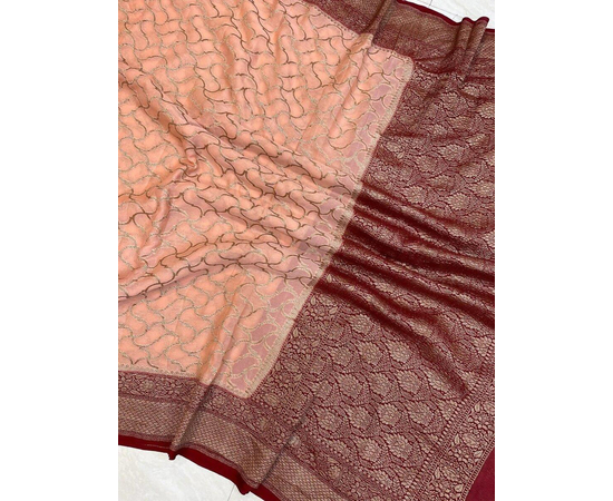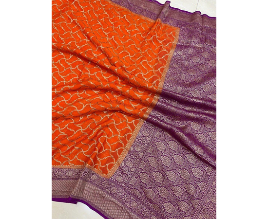 Banarasi Saree: This term indicates that the saree is associated with Banaras (Varanasi), a city in India famous for its intricate silk textiles, especially Banarasi sarees known for their opulent weaving and designs.