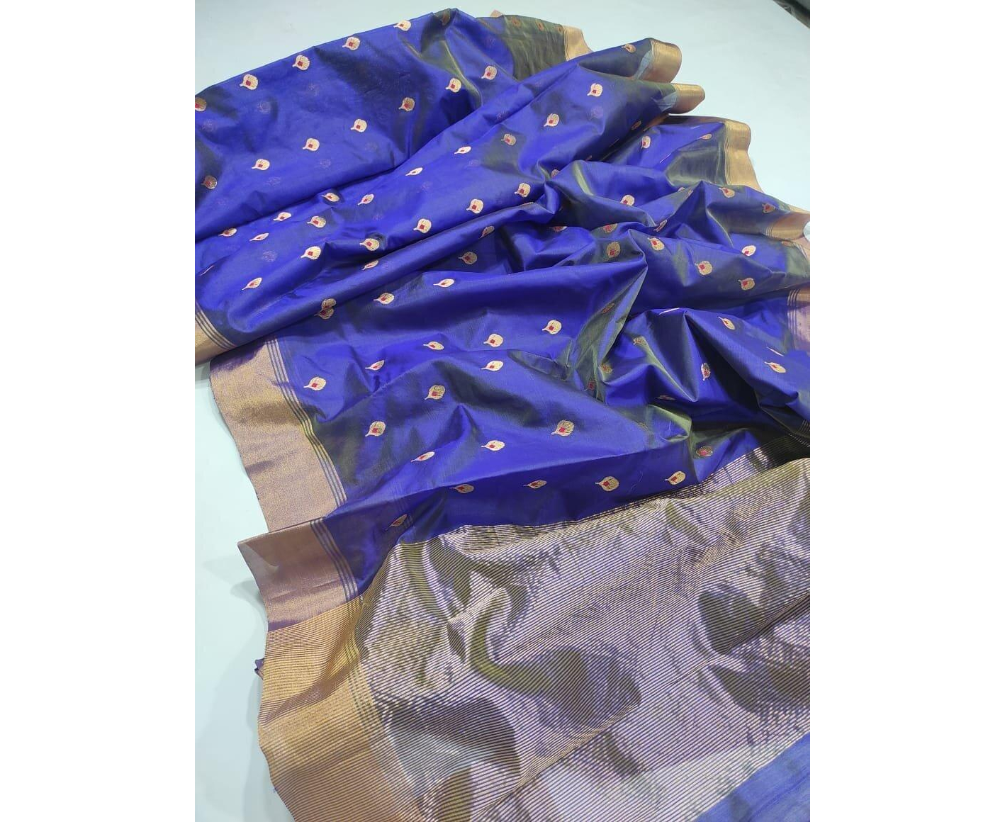 It is so appealing in its textured appearance and perfect in its imperfections! This gorgeous saree is made of woven in beautiful silk blend with jacquard work booti and traditional look border. Beautiful jacquard work booti across the body of the saree in the finest jacquard weave. The saree are among the finest sarees in India and are known for their gold and silver brocade or zari, fine silk and opulent embroidery. These saree are made of finely woven silk & are enhanced decorated with intricate design because of these engravings, are relatively heavy.
